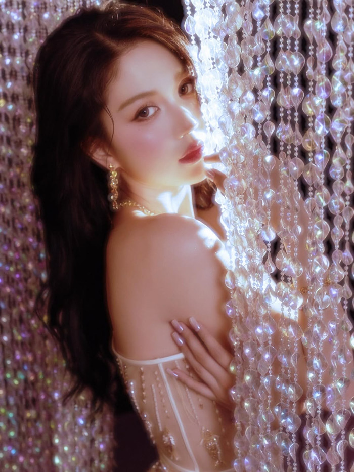 Trong loạt ảnh vừa được chia sẻ, người đẹp lựa chọn thiết kế váy xuyên thấu ôm sát cơ thể, khéo léo tôn lên đường cong mềm mại. Chất liệu mỏng nhẹ kết hợp cùng những chi tiết đính kết lấp lánh tạo hiệu ứng thị giác ấn tượng, khiến tổng thể trở nên vừa gợi cảm vừa sang trọng.