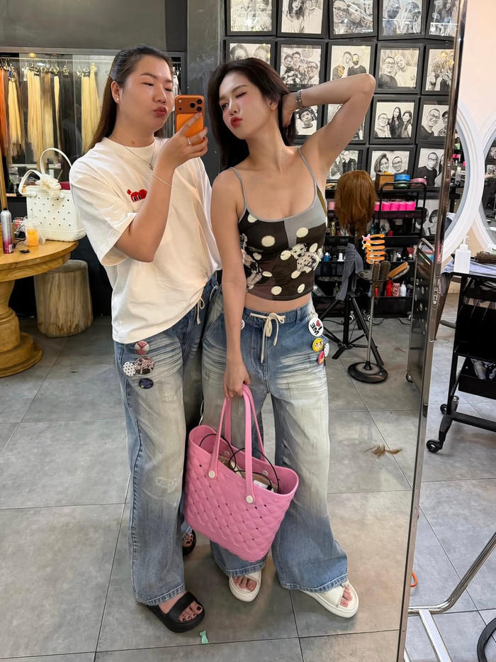 Trên trang cá nhân, Thúy Kiều – trợ lý gắn bó lâu năm với Ngọc Trinh – vừa đăng loạt ảnh đời thường thân thiết cùng “nữ hoàng nội y”. Cả hai diện đồ đôi năng động, tạo dáng tự nhiên, vui vẻ trong hậu trường một buổi làm tóc. Tuy nhiên, điều khiến cư dân mạng chú ý không chỉ là khoảnh khắc thân thiết, mà chính là vóc dáng nuột nà đáng ngưỡng mộ của Ngọc Trinh.
