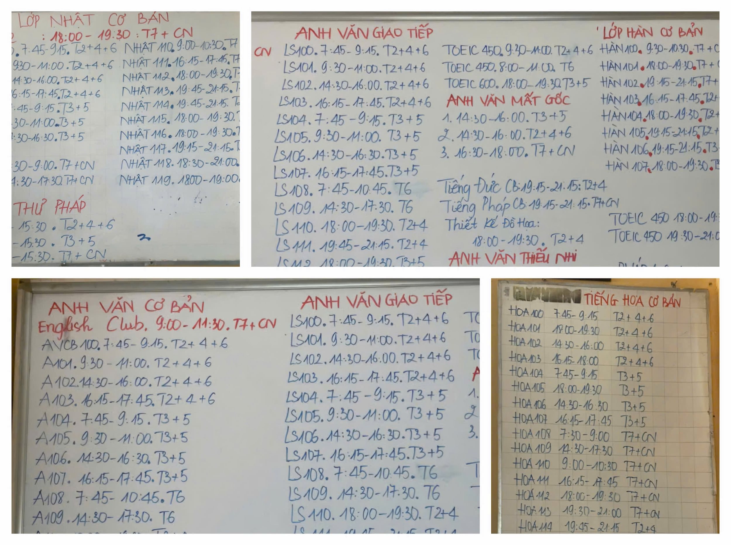 Thời khóa biểu các lớp ngoại ngữ tại Trung tâm ngoại ngữ miễn phí Thiện Nhơn - Bồ Đề