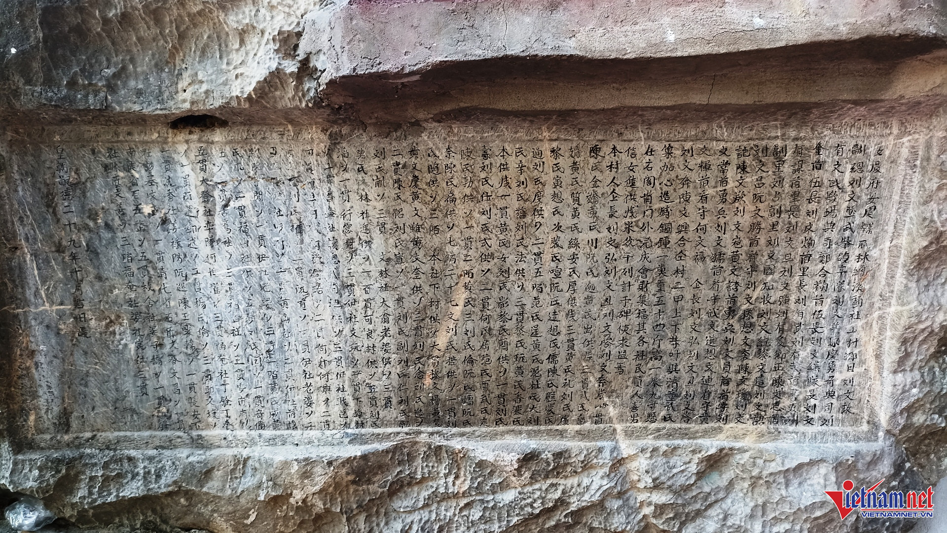 Cũng theo vị trụ trì này, trong động có nhiều bia ma nhai chữ Hán được khắc vào vách đá.