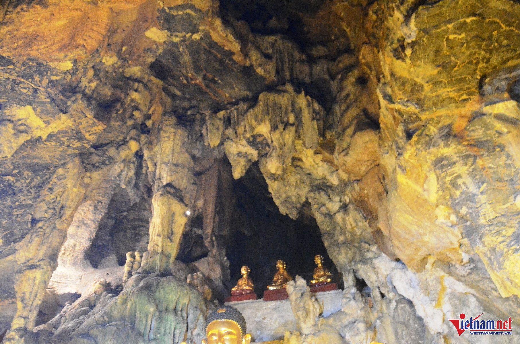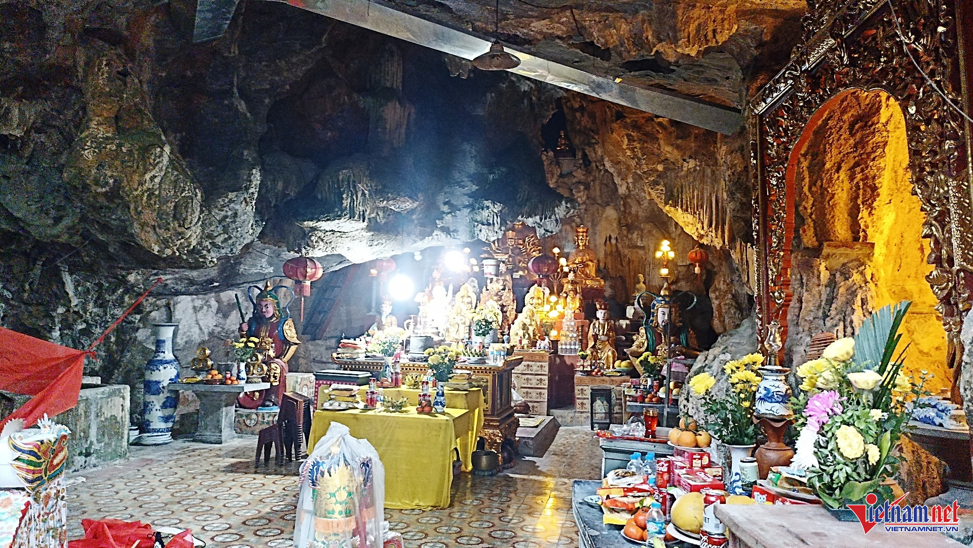 Trong động có nhiều vách đá được để thờ tượng Phật.