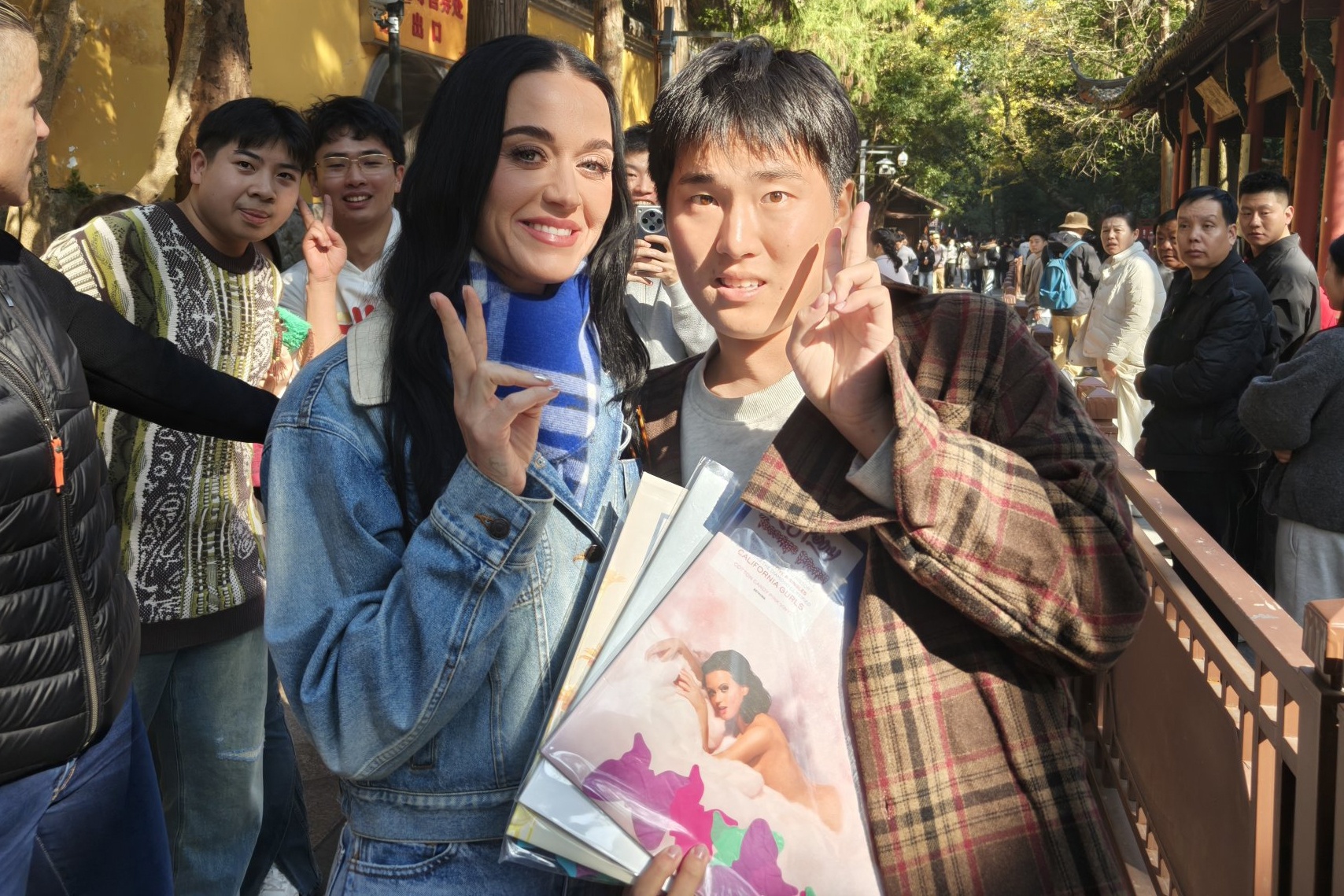 Cô cũng tương tác, chụp hình và ký tặng người hâm mộ. Đoạn video Katy Perry đi chùa cầu nguyện nhanh chóng thu hút quan tâm, được chia sẻ rộng rãi trên mạng xã hội. Dân mạng bày tỏ thích thú khi ngôi sao âm nhạc trải nghiệm văn hóa Á Đông. Ảnh: X/KatyCats Germany.