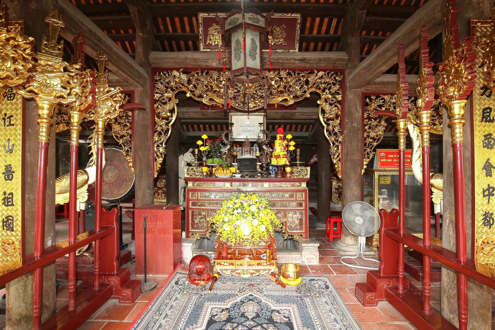 Hạ điện thờ hạ thần và các tướng lĩnh. Trung Điện thờ Tướng quân Cao Lỗ, tượng công chúa Mỵ Châu và thần Kim Quy. Thượng điện thờ Thục Phán An Dương Vương. Bên tả hậu cung thờ thân phụ và bên hữu thờ thân mẫu của nhà vua.