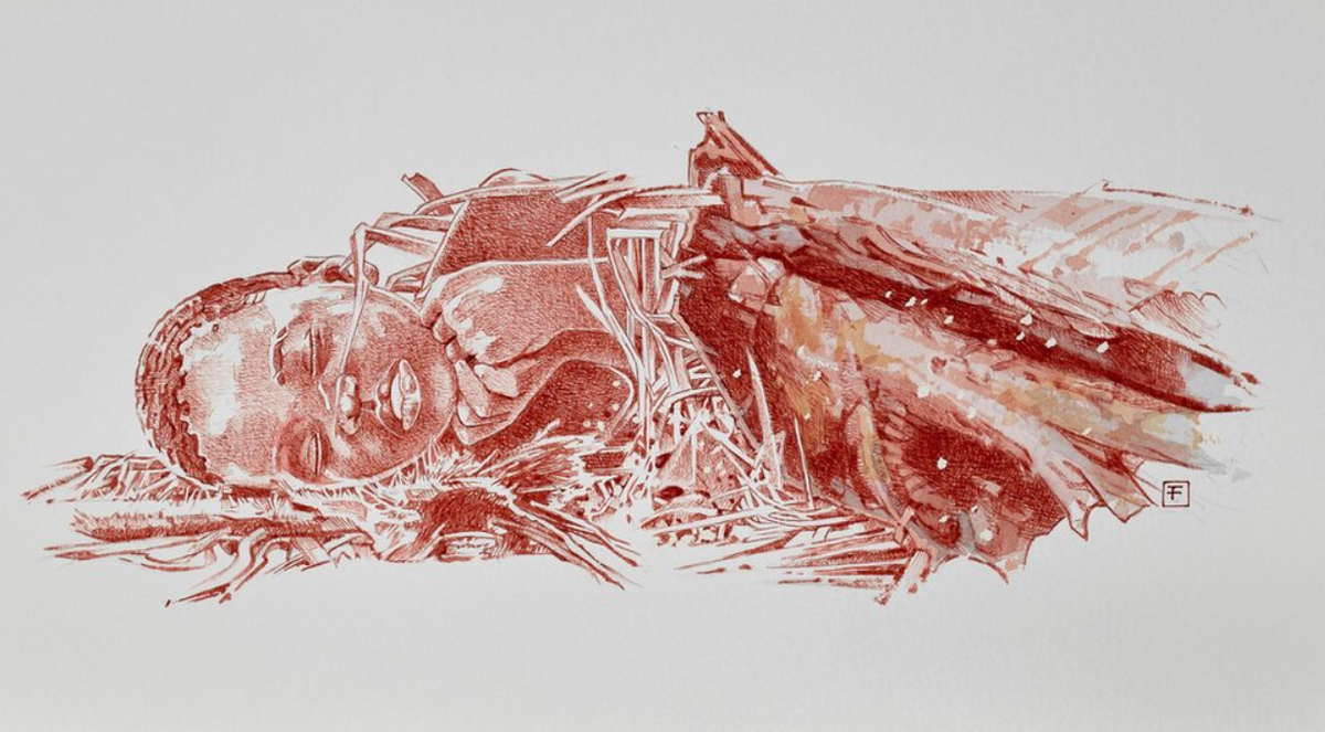 Sắc tố màu đất son được bôi lên má và trán, và một viên đá cuội màu đất son được đặt dưới đầu đứa trẻ khi chúng được chôn cất. Ảnh: @Đại học Quốc gia Úc.
