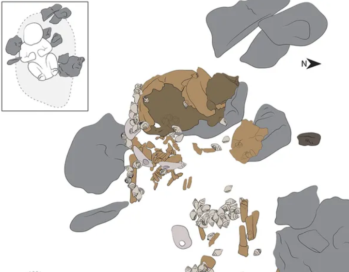 Ngôi mộ này thuộc về một trẻ em, có niên đại từ đầu giữa Kỷ Holocen cách đây 8.000 năm trước. Ảnh: @Đại học Quốc gia Úc.