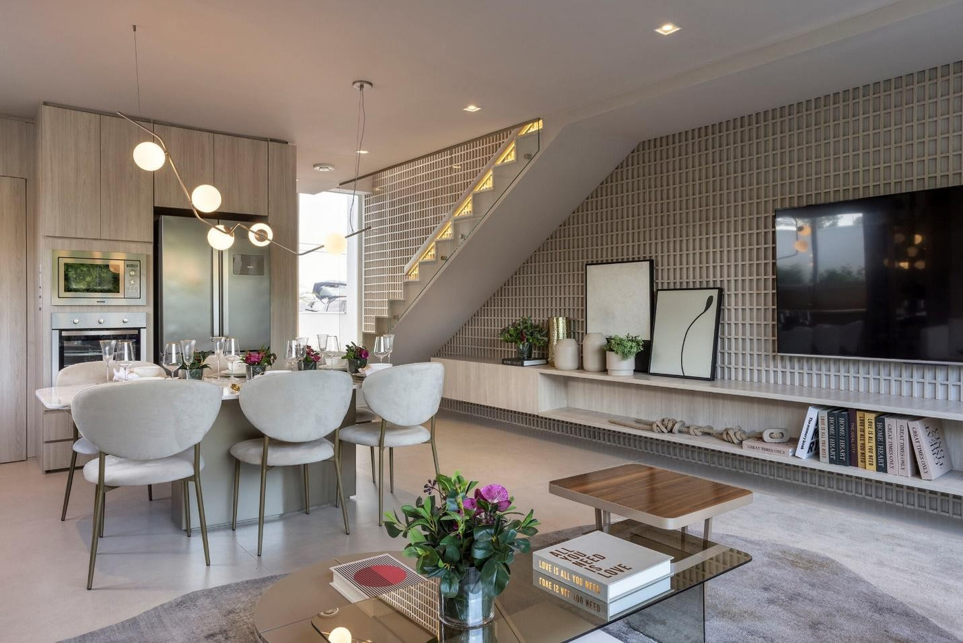 Khi được đặt vào không gian sống đương đại, chúng không chỉ giữ nguyên giá trị công năng mà còn mang đến vẻ đẹp thủ công ấm áp, sang trọng, tạo nên một bản sắc rất riêng cho tổ ấm. Chất liệu gỗ, với sắc độ sáng, kết hợp cùng đá travertine và các gam trung tính, hình thành bảng màu chủ đạo cho toàn bộ công trình, mang đến cảm giác gần gũi, tinh tế, đúng với mong muốn của gia chủ – những người yêu thích sự kết nối, giao lưu và những không gian sống giàu cảm xúc.