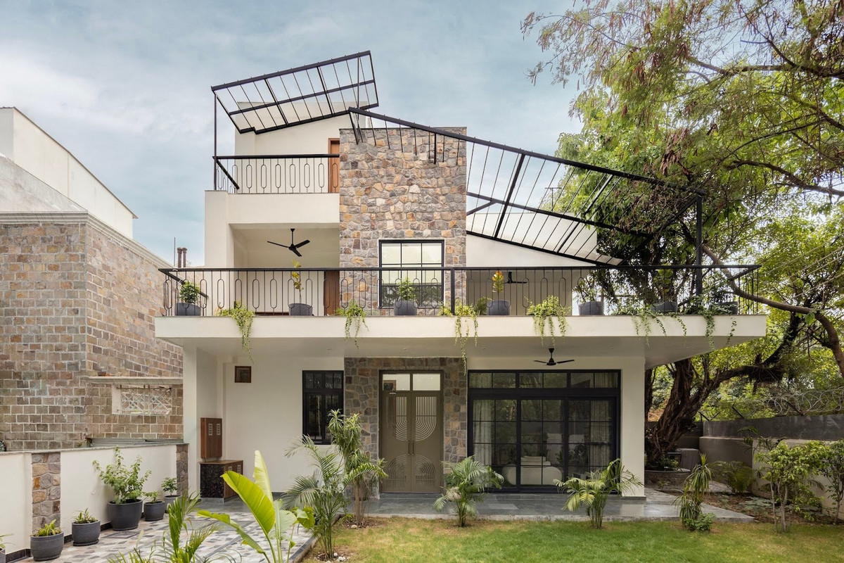 Mảnh đất có hướng Đông Bắc, một khu vườn phía trước bắt buộc, và những hàng cây đã đứng vững từ lâu trước khi bất kỳ bản vẽ nào được thực hiện. Ảnh: Purnesh Dev Nikhanj