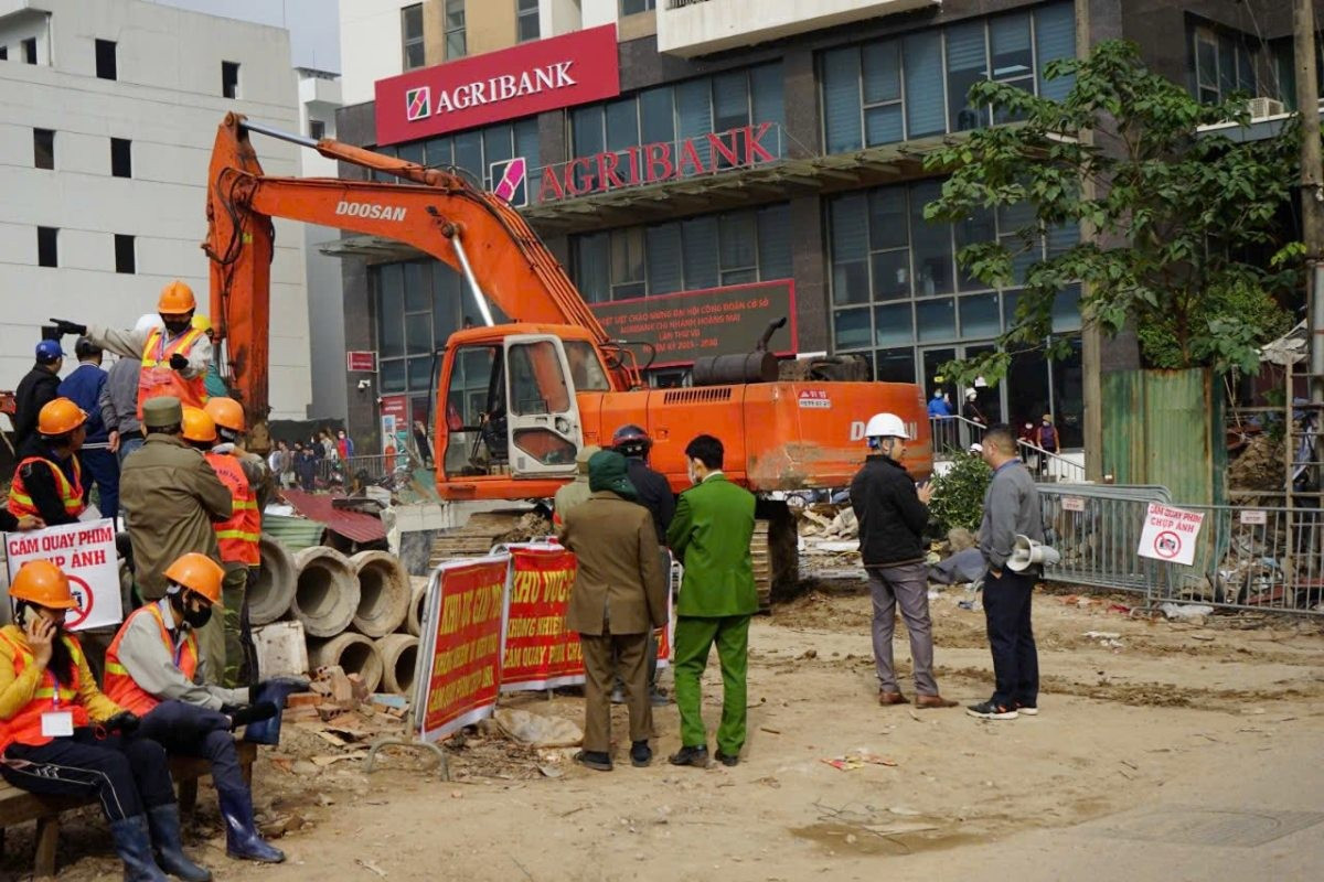 Trong sáng nay nhiều lực lượng đã tham gia bảo vệ hiện trường để máy móc và công nhân thi công tiến hành tháo dỡ, giải tỏa công trình nhà này.
