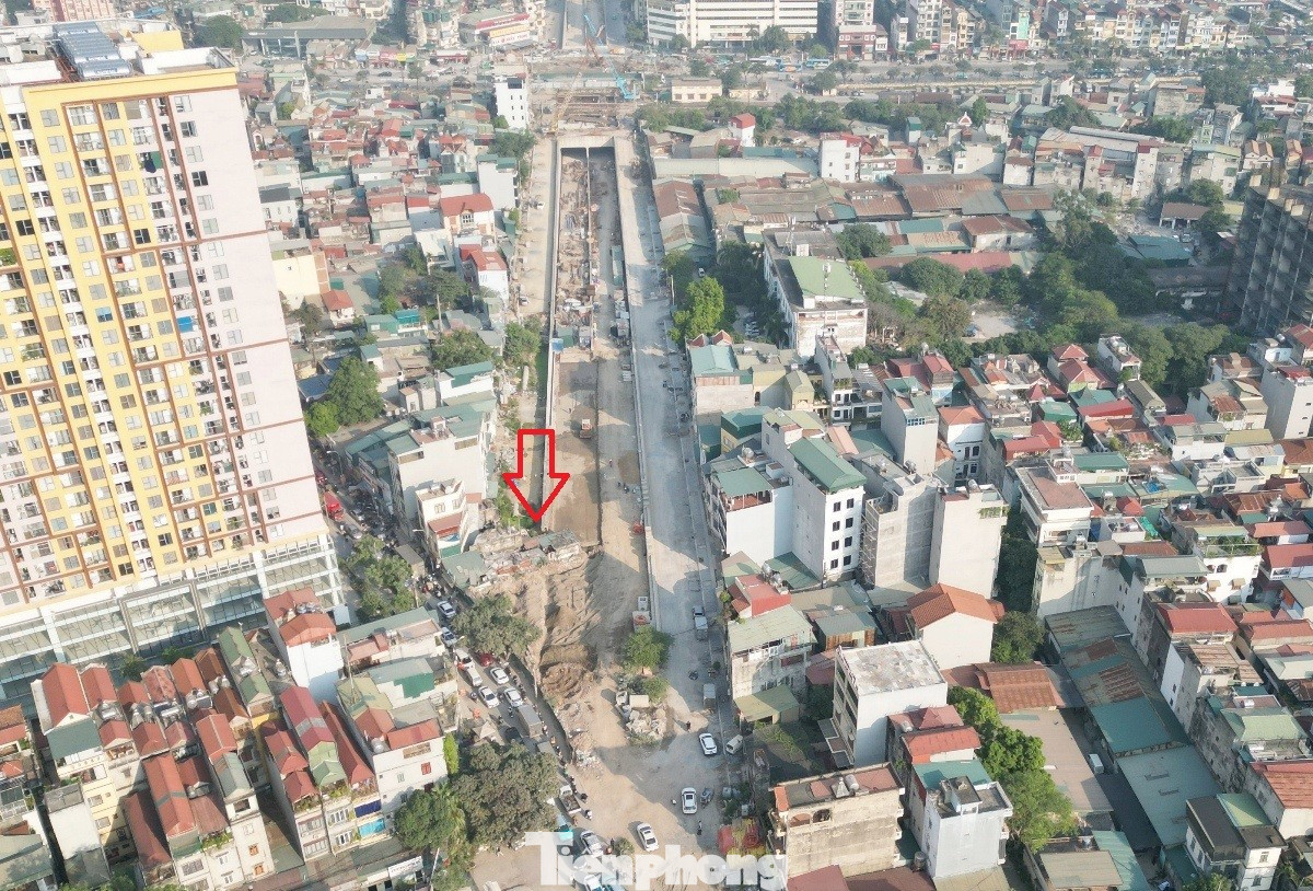 Vị trí công trình nhà của người dân nằm ở phạm vi đường dẫn lên xuống hầm chui (mũi tên) thuộc phường Phương Liệt.