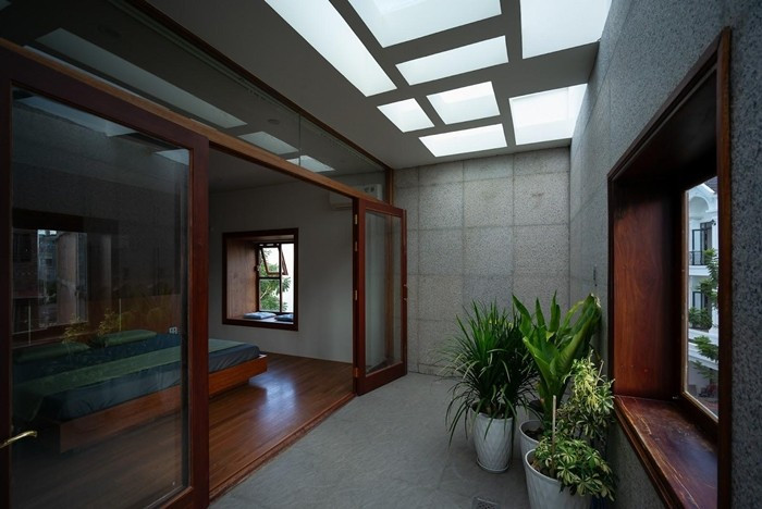 Sân trong được thiết kế cảnh quan và các khối phụ trợ cách nhiệt cho phòng ngủ. Ảnh: Quangdam