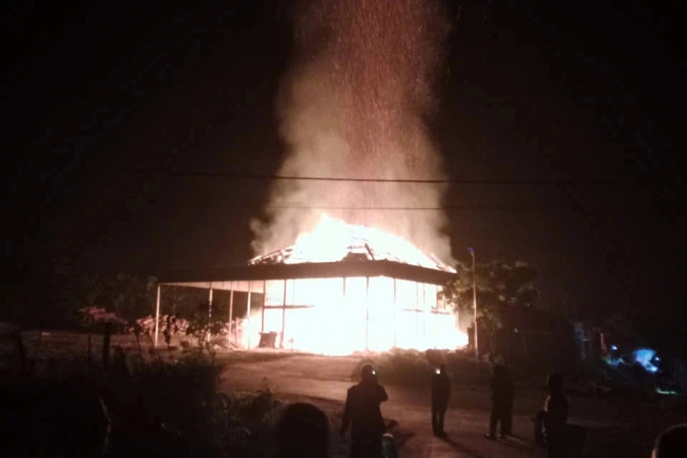 Ngôi nhà bốc cháy trong đêm. Ảnh: Người dân cung cấp