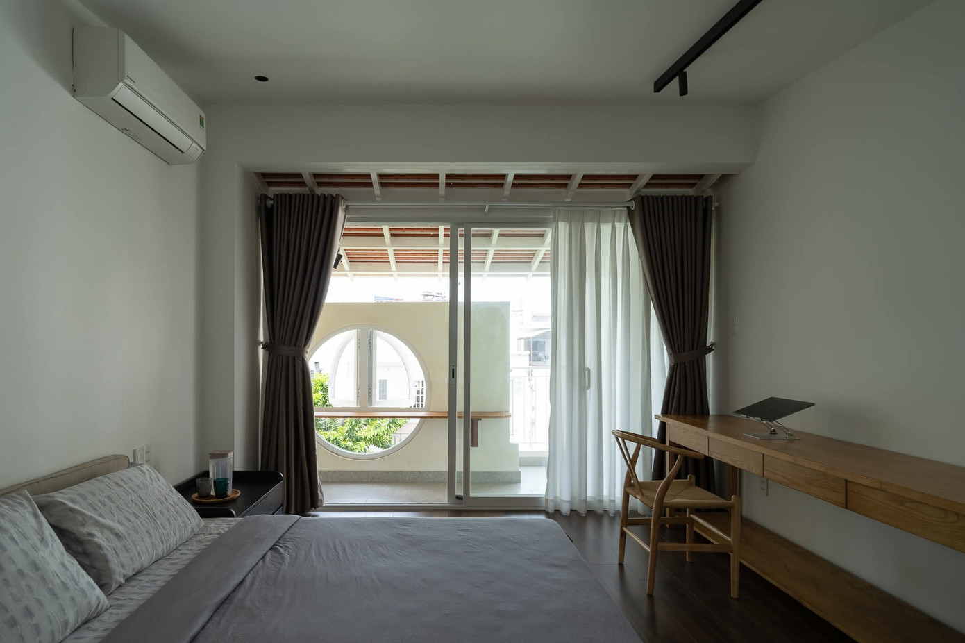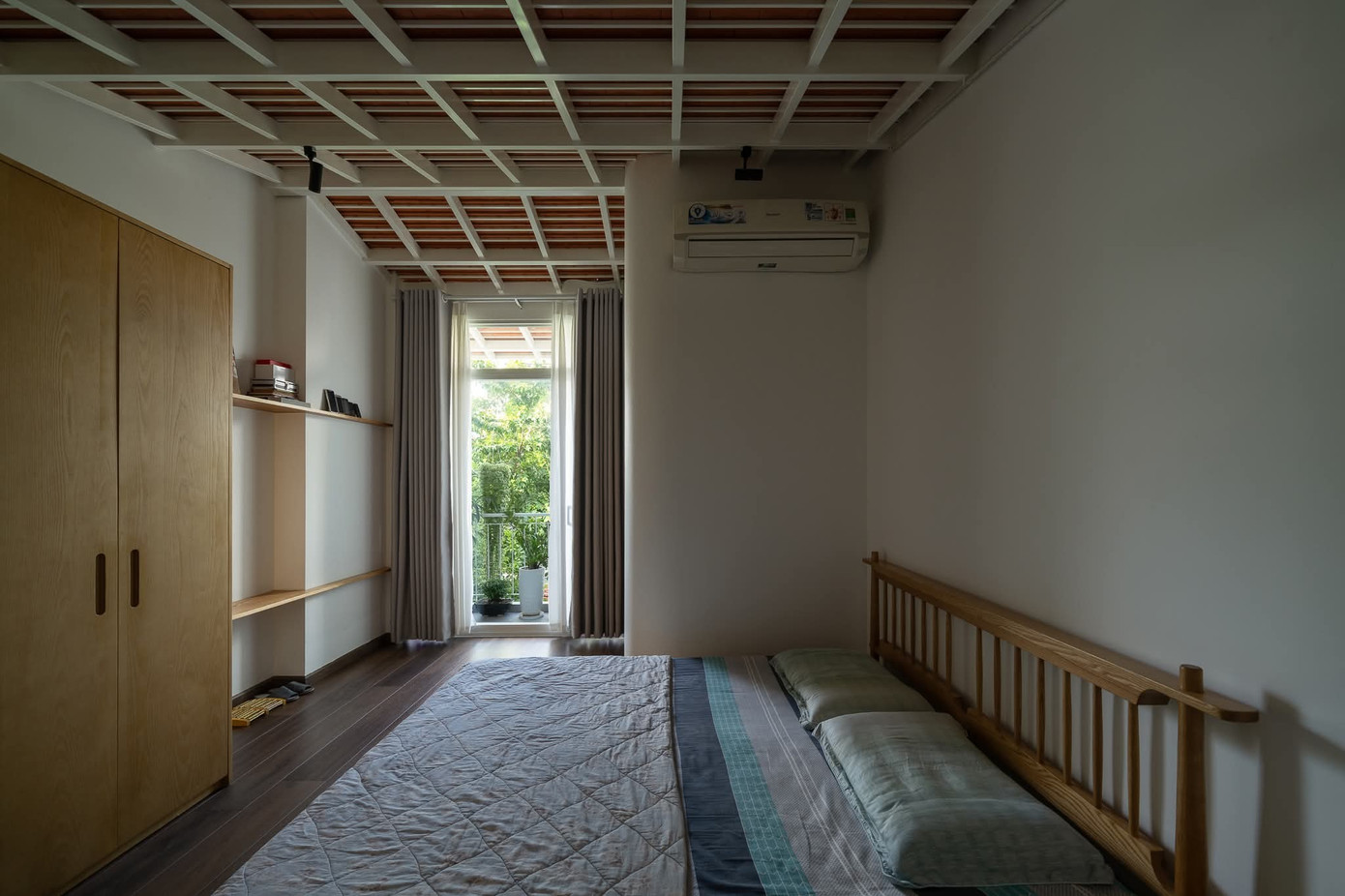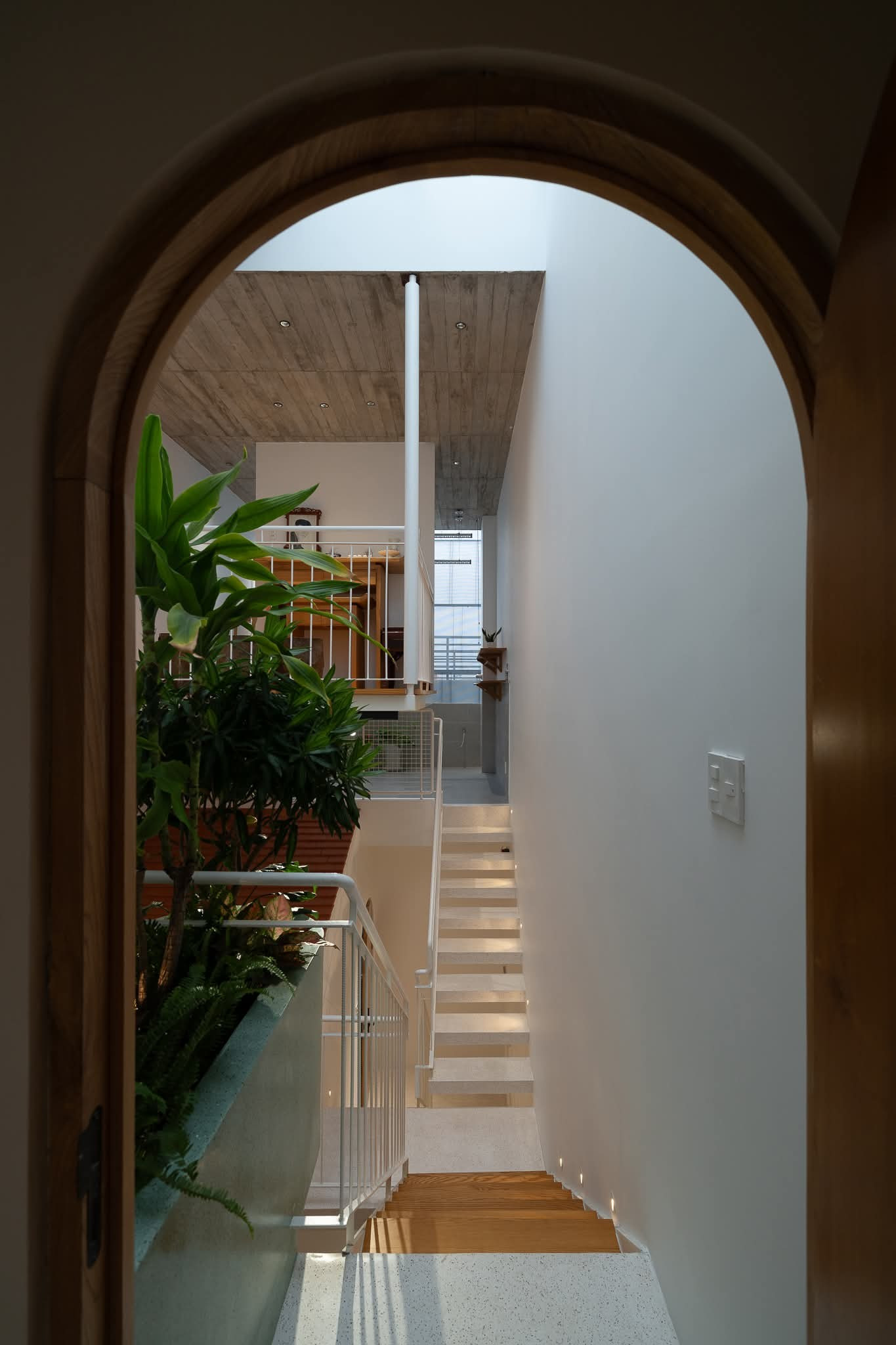 Trên diện tích khiêm tốn, ngôi nhà vẫn đảm bảo đầy đủ phòng ngủ và khu sinh hoạt chung, nhờ thiết kế giếng trời lớn và giải pháp lệch tầng khéo léo.