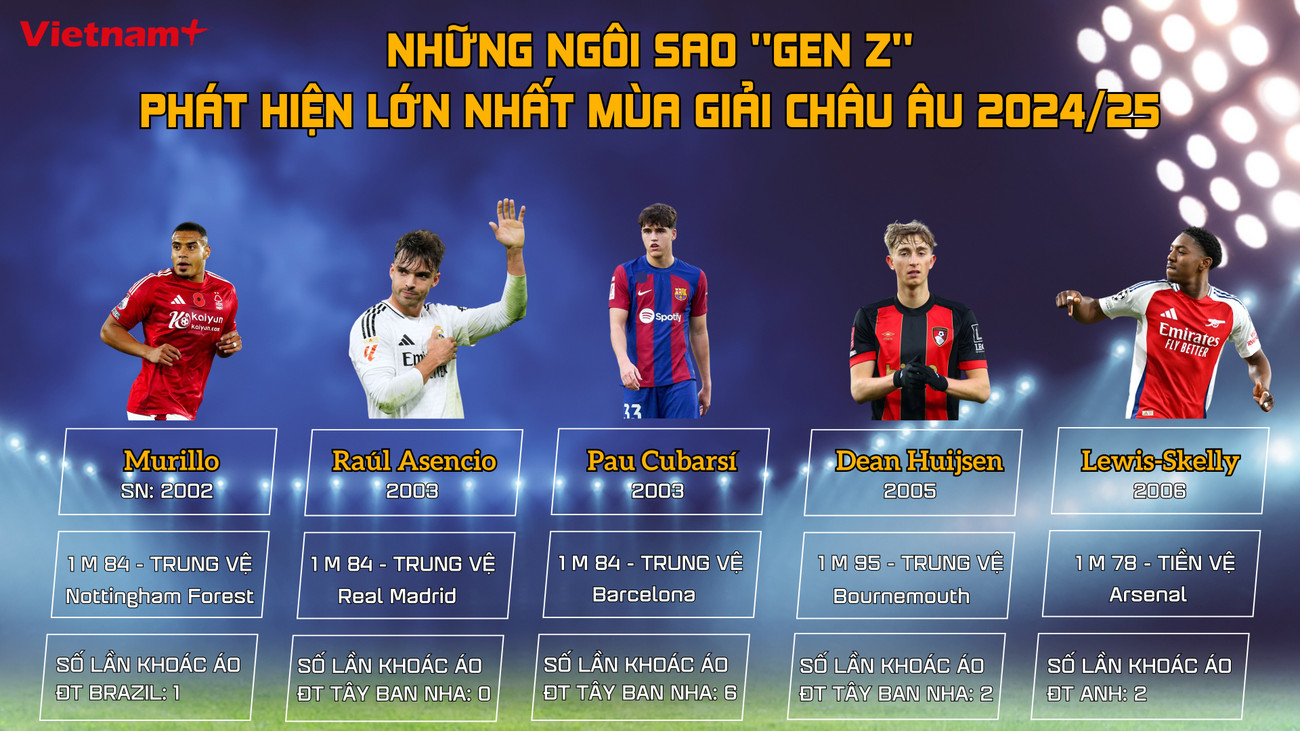 Bên cạnh Lewis-Skelly, những phát hiện lớn nhất của mùa giải năm nay còn gọi tên Murillo (Nottingham Forest), Raul Asensio (Real Madrid), Pau Cubarsi (Barcelona) hay Dean Huijsen (Bournemouth)./.
