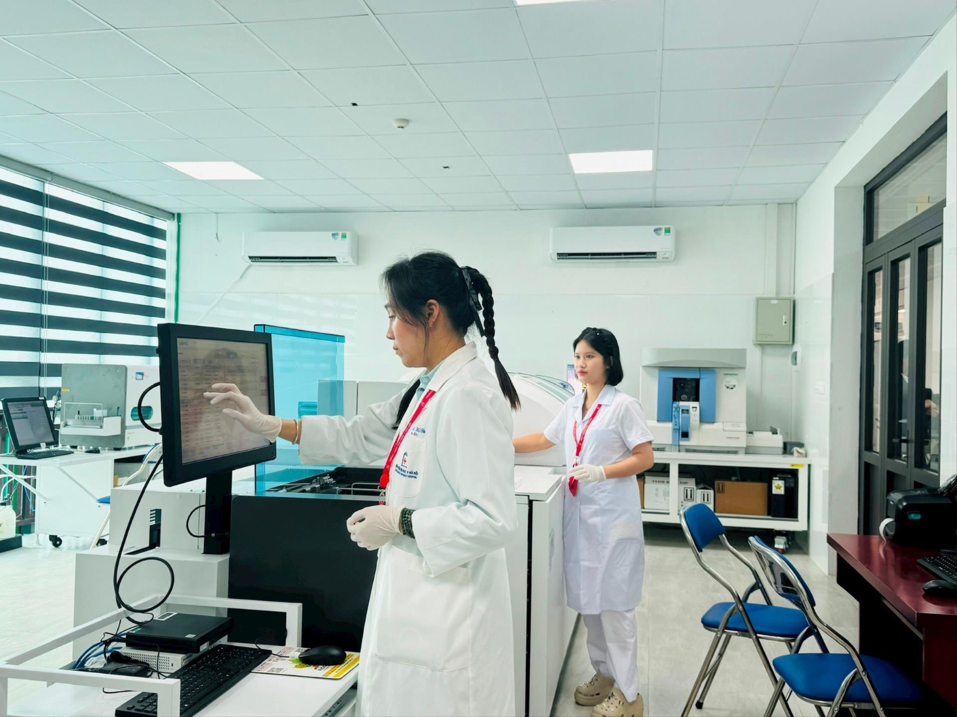 Vận hành hệ thống thiết bị y tế hiện đại tại Phòng khám đa khoa Bệnh viện Đại học Y Hà Nội - cơ sở Vĩnh Hưng. Ảnh: Mai Hoa