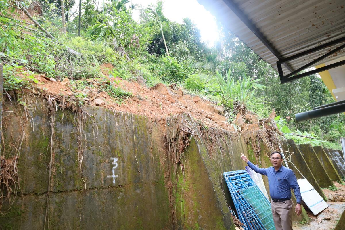 Sạt lở núi uy hiếp trụ sở làm việc của xã Trà Leng.