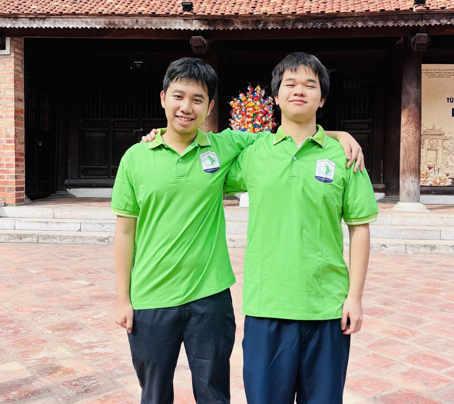 Hai thủ khoa học sinh giỏi quốc gia môn Toán của Trường THPT Chuyên ĐH Sư phạm: Nguyễn Lê Nhật Nam (năm học 2025-2026, bên trái) và Lại Gia Khải (năm học 2024-2025, bên phải). Ảnh: NVCC