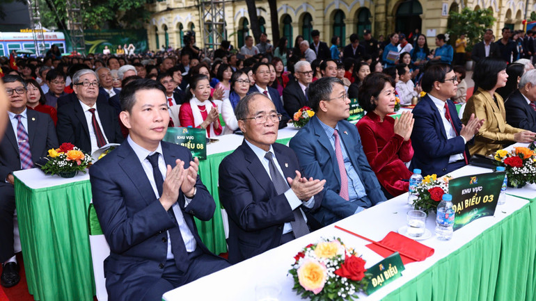 Nguyên Chủ tịch Quốc hội Nguyễn Sinh Hùng cùng nhiều đại biểu ở các ban, bộ, ngành Trung ương và Hà Nội tham dự buổi lễ kỷ niệm.
