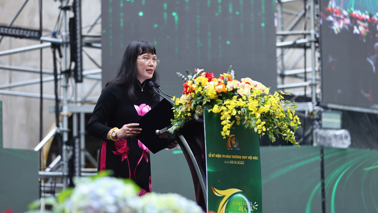 Phát biểu ý kiến tại buổi lễ kỷ niệm, Tiến sĩ Nguyễn Bội Quỳnh, Hiệu trưởng Trường trung học phổ thông Việt Đức cho biết, suốt bảy thập kỷ qua, ngôi trường giữa lòng Hà Nội đã trở thành mái ấm kết nối nghĩa tình thầy trò, là bến bờ neo giữ những kỷ niệm thanh xuân, nơi mỗi thế hệ học sinh Việt Đức đều lưu dấu một thời để nhớ, một thời để yêu.
