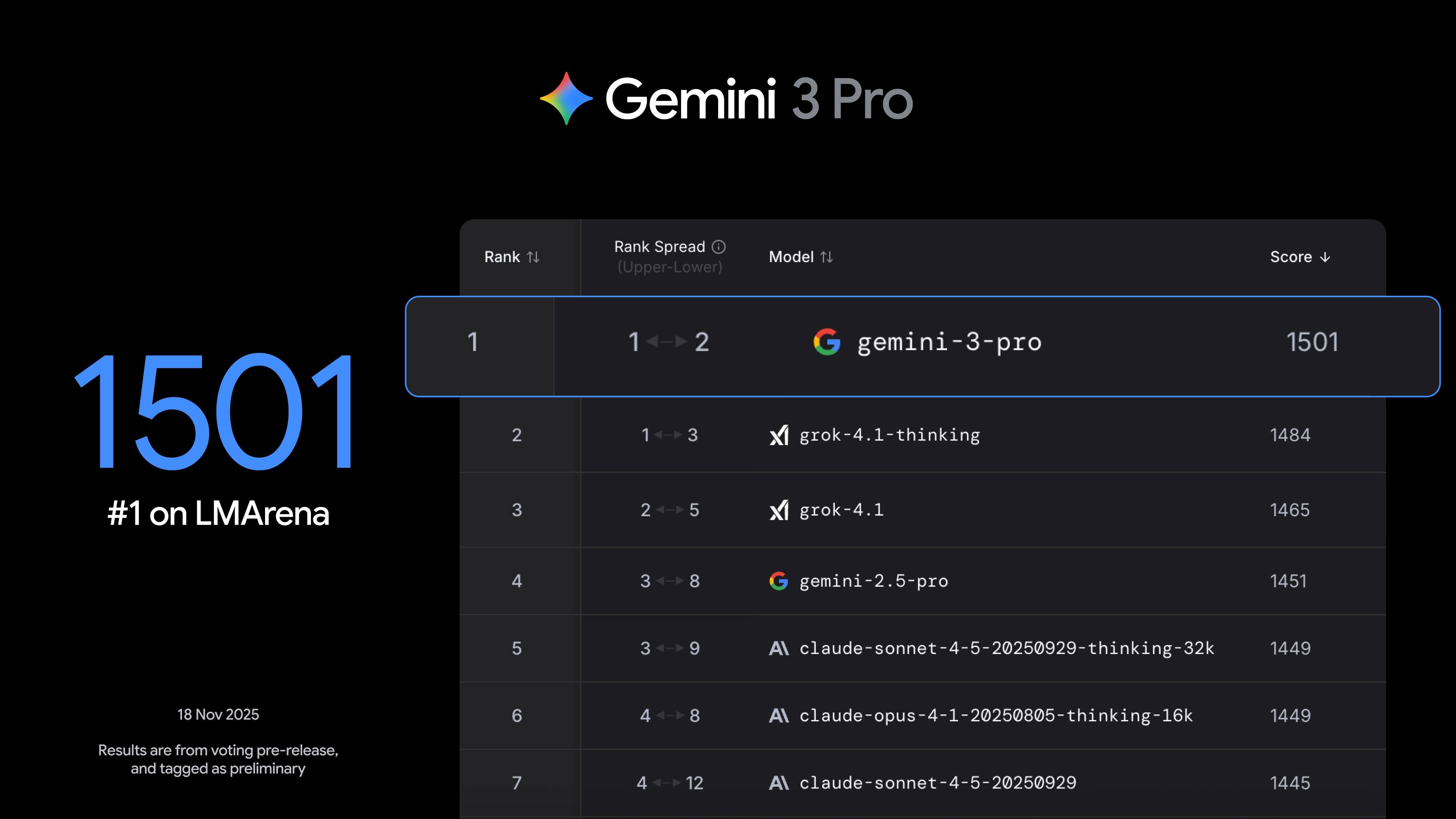 Thang đo thực hiện bởi Google cho Gemini 3 Pro trên LMArena. Ảnh: Google.