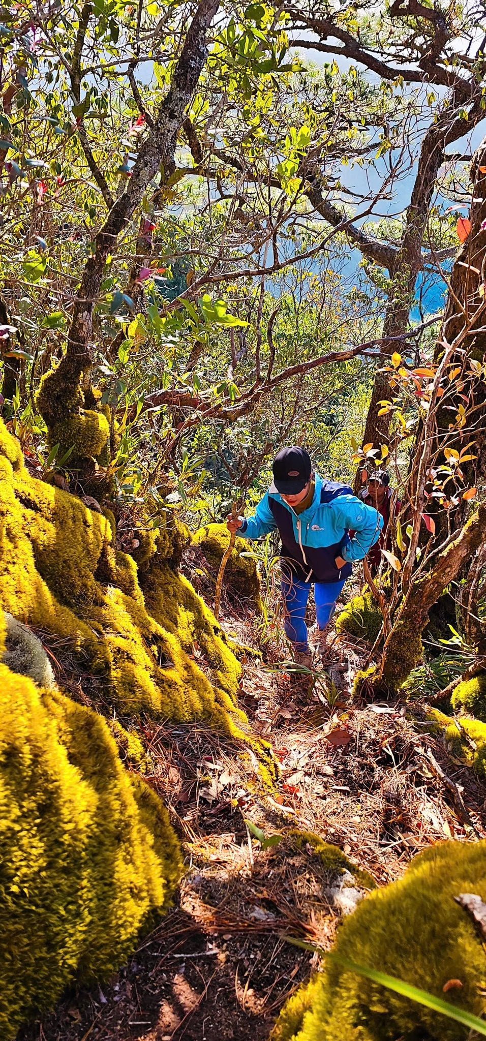 Sau khi chinh phục đỉnh núi, du khách có thể quay trở lại theo đường cũ hoặc tiếp tục hành trình xuyên qua rừng nguyên sinh để khám phá thác Siu Puông. Cung đường này kéo dài và đòi hỏi sức bền, nhưng đổi lại là cơ hội hòa mình trọn vẹn vào hệ sinh thái phong phú của núi rừng. Ảnh Đinh Công Lương