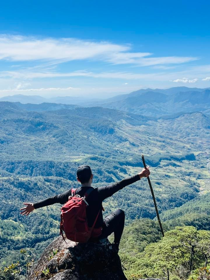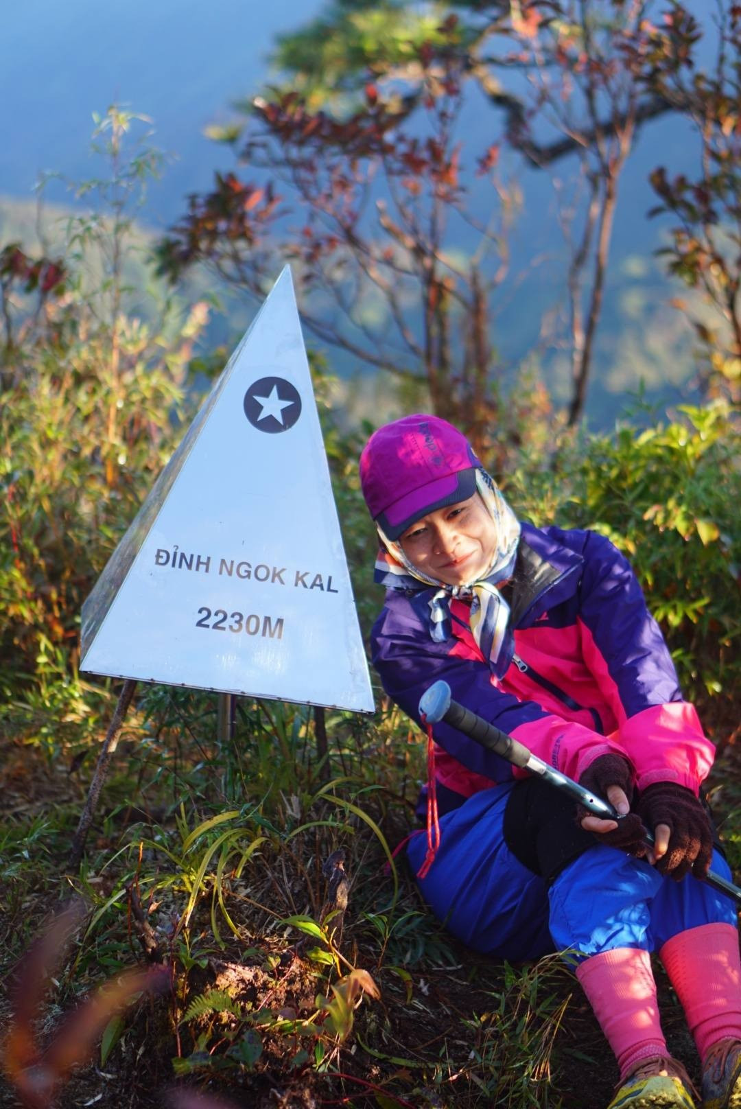Khoảnh khắc đặt chân lên đỉnh cao 2.230 m không chỉ là dấu mốc địa lý, mà còn là chiến thắng của ý chí và lòng quyết tâm. Ảnh Đình Lê