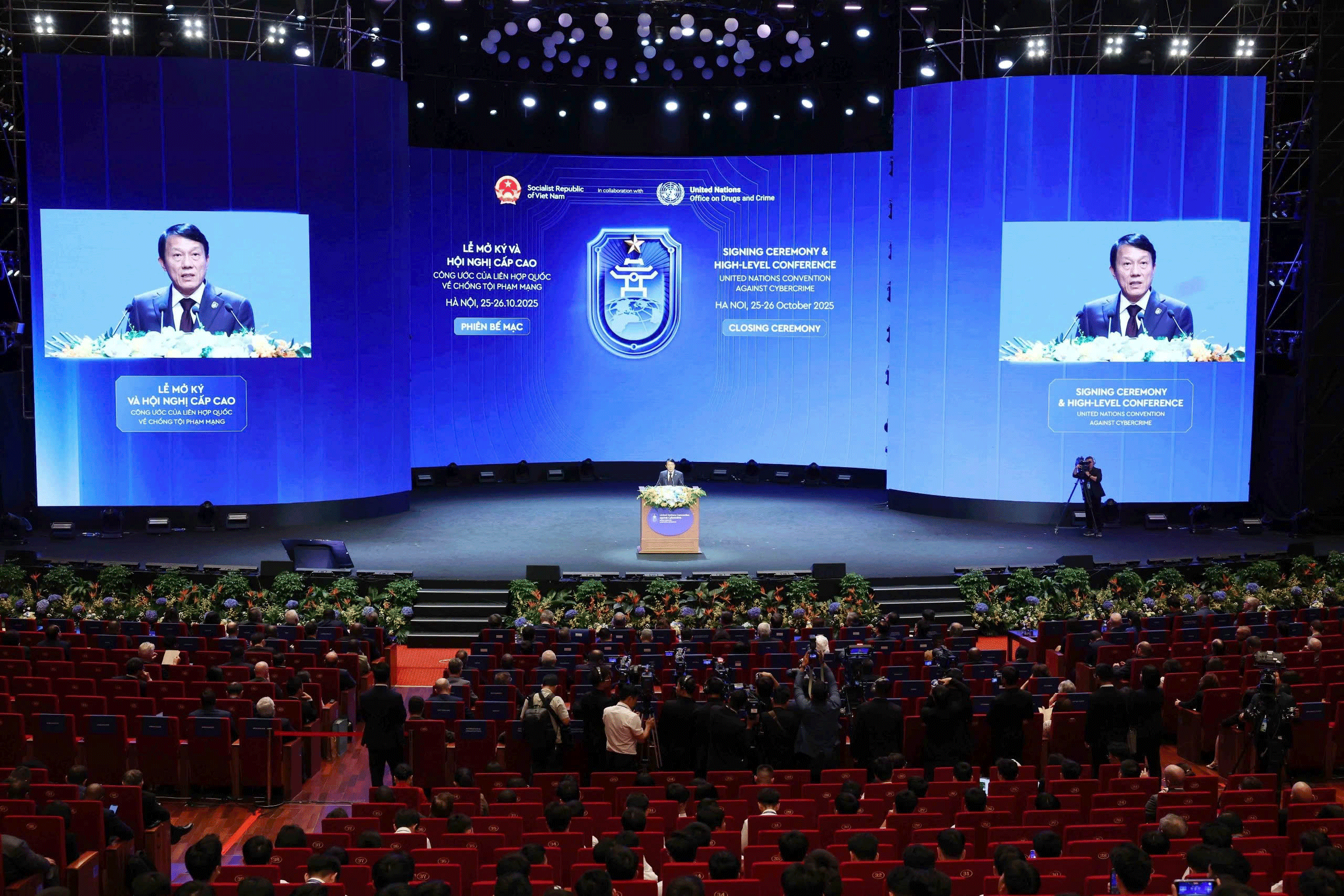 Sau 2 ngày làm việc, với sự tham dự của hơn 2.500 đại biểu đến từ 110 quốc gia, 150 tổ chức cùng hơn 50 cơ quan nghiên cứu, Lễ ký và Hội nghị Cấp cao Công ước của Liên hợp quốc về chống tội phạm mạng (Công ước Hà Nội) đã bế mạc vào chiều 26-10.