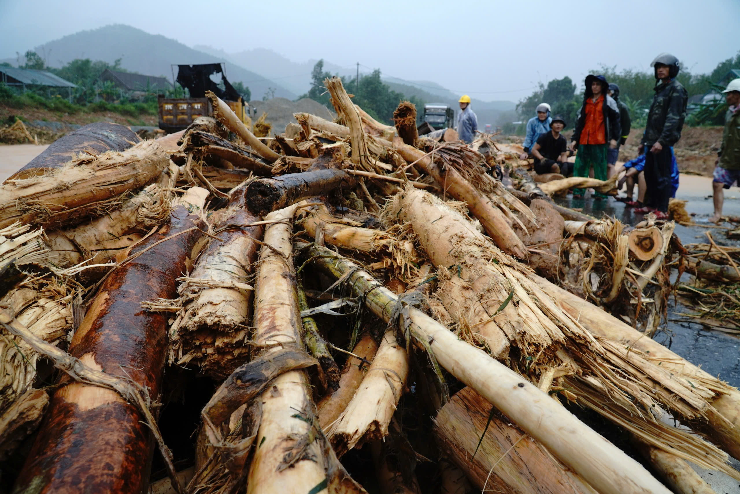 Mưa lũ khiến hàng ngàn mét khối đất đá, cây cối từ trên các quả đồi đổ xuống mặt đường, vùi lấp làn xe, xê dịch dải phân cách khiến đường cao tốc La Sơn – Hòa Liên ùn ứ, nhiều thời điểm bị tê liệt cục bộ.