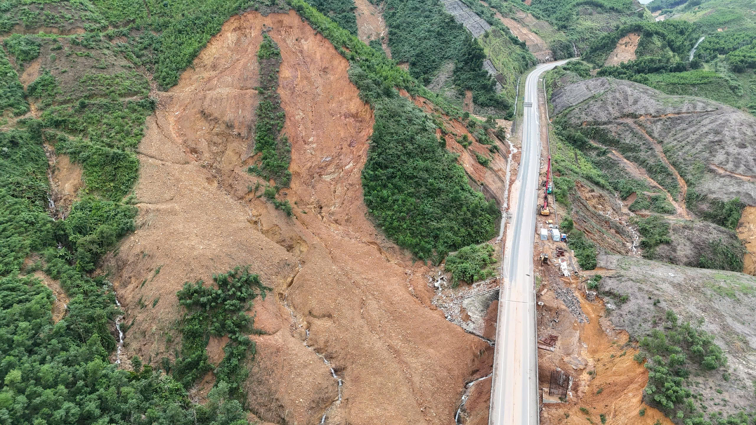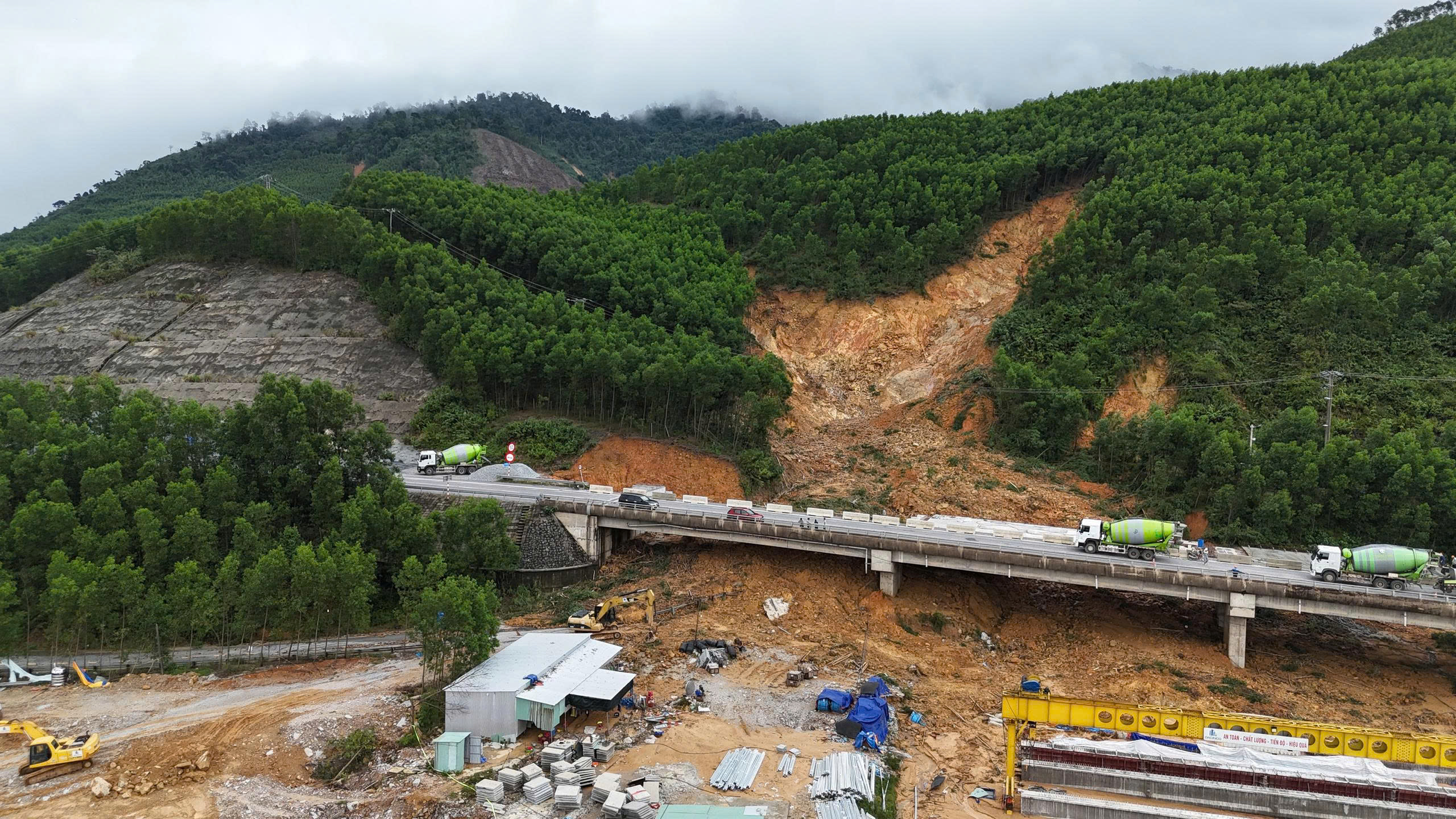 Riêng khu vực Km12+600 (dưới cầu H6), khoảng 15.000 m3 đất đá bị sạt xuống nhưng đơn vị thi công vẫn chưa thể xử lý. Tuy nhiên, các điểm này chủ yếu ảnh hưởng đến Tỉnh lộ 14, 14B và đường nhánh từ cao tốc xuống, không gây gián đoạn giao thông trên tuyến chính.