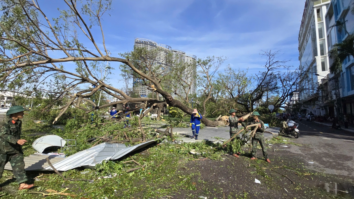 Đến sáng 7/11, hiện trường tại Quy Nhơn vẫn còn ngổn ngang với cây cối và trụ điện đổ gãy la liệt. Ông Lê Duy Hải, phường Quy Nhơn cho biết, cơn bão quá dữ dằn, nhưng may mắn là công tác phòng chống được tổ chức rất chu đáo.