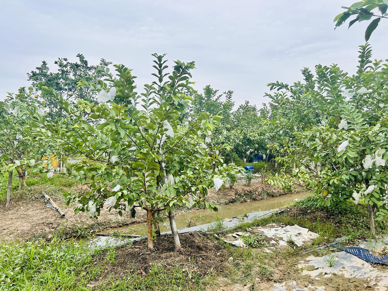 Những thùng phân hữu cơ được ông Hảo ủ, đảm bảo đúng chất lượng, quy trình để tưới cho cây bưởi và cây ổi. Ảnh: Ngọc Nga