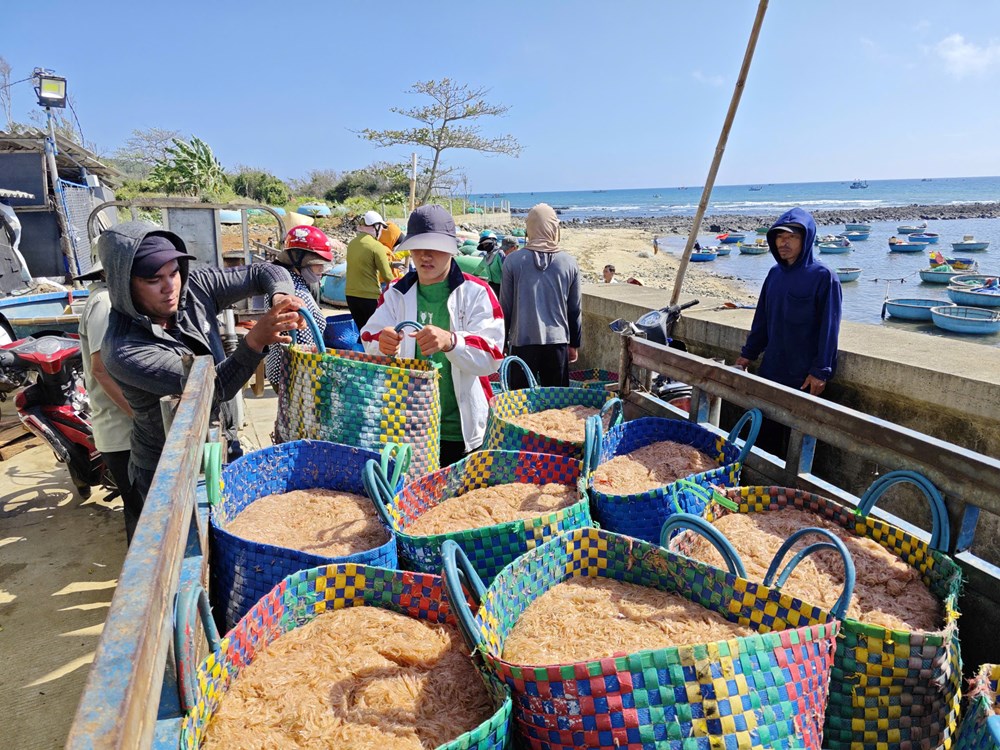 Ruốc biển xuất hiện theo mùa nên sản lượng đánh bắt được bao nhiêu cũng nhanh chóng tiêu thụ hết. Ngay từ sáng sớm, nhiều thương lái đã có mặt trên bờ chờ thu mua để chở đi các đầu mối hoặc cung cấp cho cơ sở chế biến