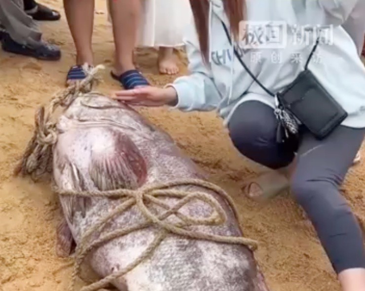 Không chỉ riêng cô Liu, nhiều người dân địa phương cũng đã nhanh tay quay clip khi thấy con cá quý hiếm. Ba người đàn ông đã kéo con cá lên bờ, thu hút sự chú ý của đông đảo người dân. Đoạn phim cũng cho thấy con cá được nhiều người buộc vào sào dài và khiêng đi.