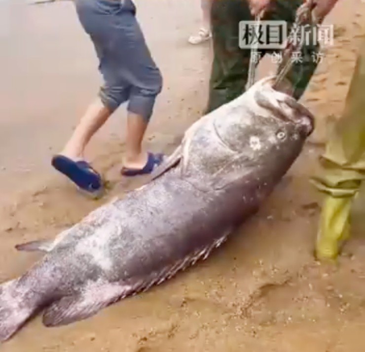 Một người dân địa phương cho biết, con cá này là cá mú khổng lồ, một loài cá không phổ biến ở khu vực này.