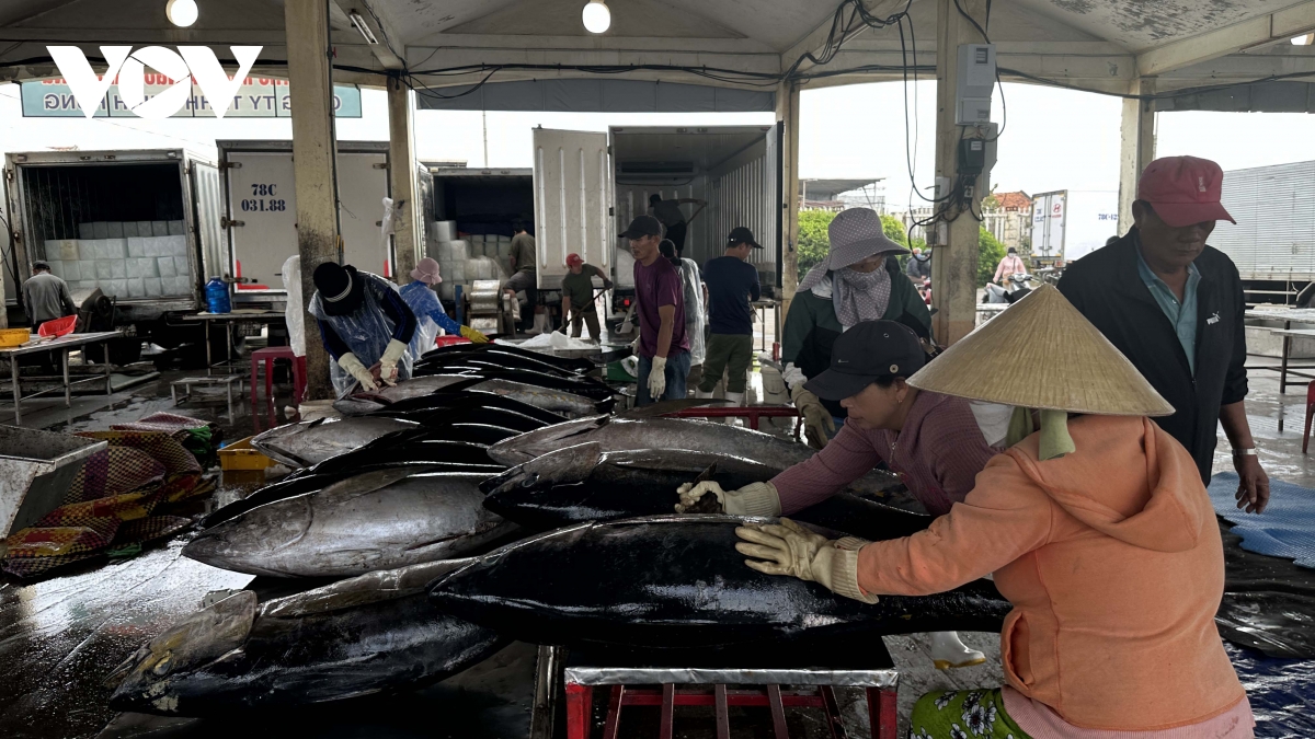 Tại cảng cá Đông Tác, phường Phú Yên, tỉnh Đắk Lắk, 22 tàu đánh bắt xa bờ đã cập bến, mang theo hàng chục tấn cá ngừ đại dương bán cho các doanh nghiệp thủy sản.