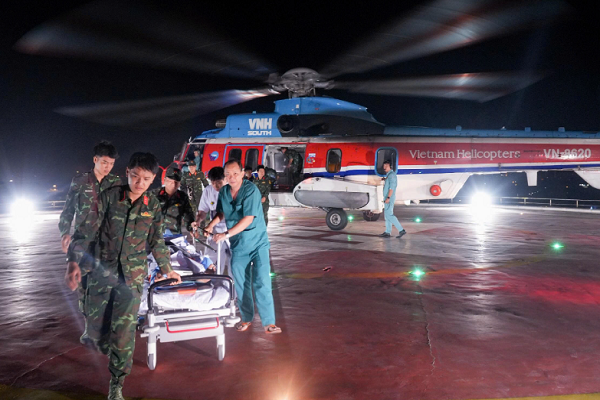 Lúc 18 giờ 30 ngày 1.1.2026, trực thăng EC225 số hiệu 8620 của Công ty Trực thăng Miền Nam (Binh đoàn 18) cùng ê kíp cấp cứu Bệnh viện Quân y 175 cất cánh hướng về phía quần đảo Trường Sa. Để đối phó với tình trạng tổn thương não nặng và suy hô hấp của bệnh nhân trong không gian chật hẹp, rung lắc của máy bay, tổ y tế đã mang theo đầy đủ trang thiết bị hiện đại như máy tạo nhịp tim ngoài da và các phương tiện kiểm soát hô hấp.