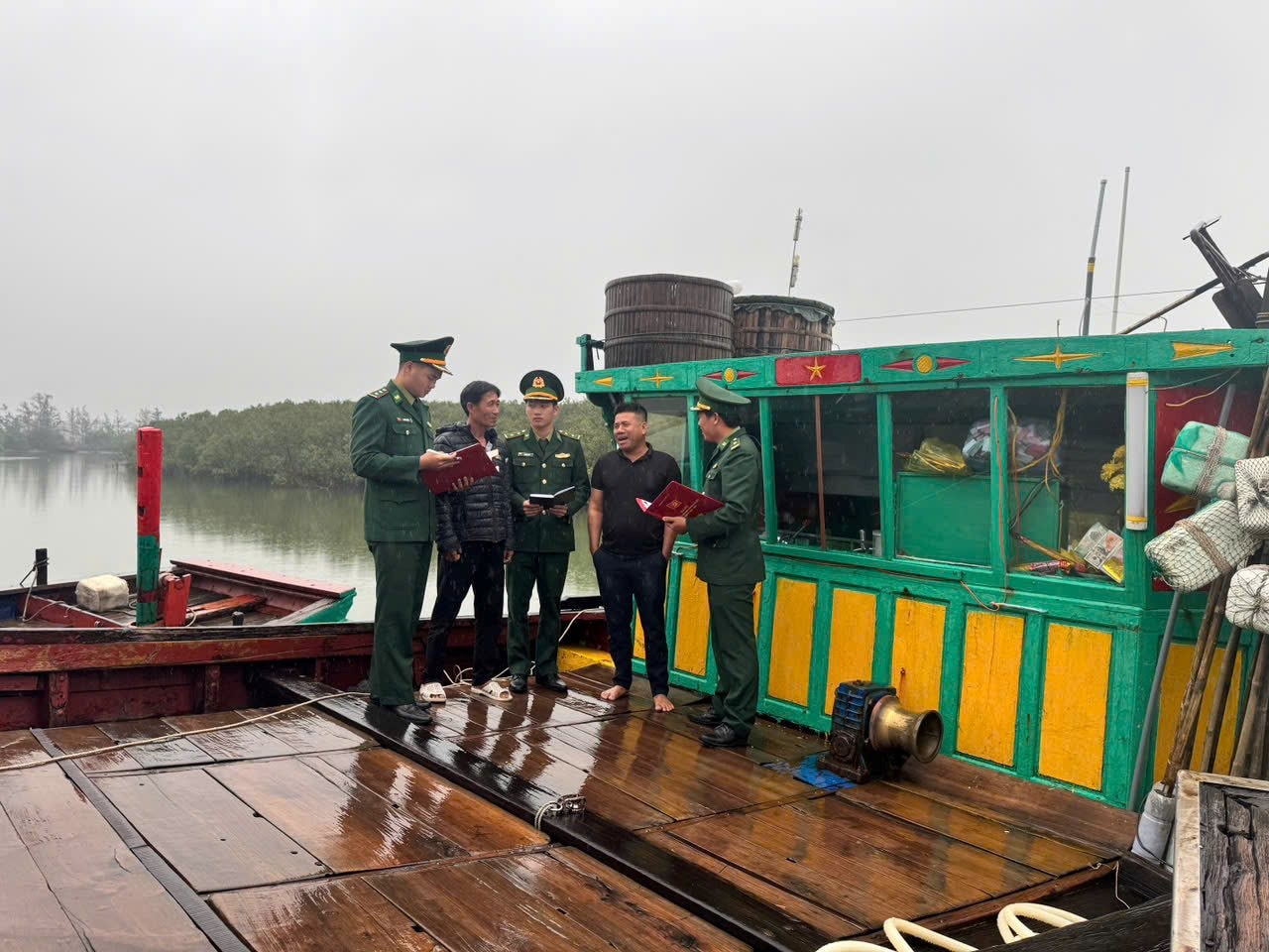Tại cảng cá Cửa Sót (xã Lộc Hà, tỉnh Hà Tĩnh), không khí lao động diễn ra hối hả nhưng không quên nhiệm vụ chính trị quan trọng. Tại khu vực cầu cảng, các ngư dân đang tất bật chuẩn bị ngư cụ và nhu yếu phẩm cho chuyến biển mới dưới sự hướng dẫn, tuyên truyền của Tổ công tác Đồn Biên phòng Cửa Sót.