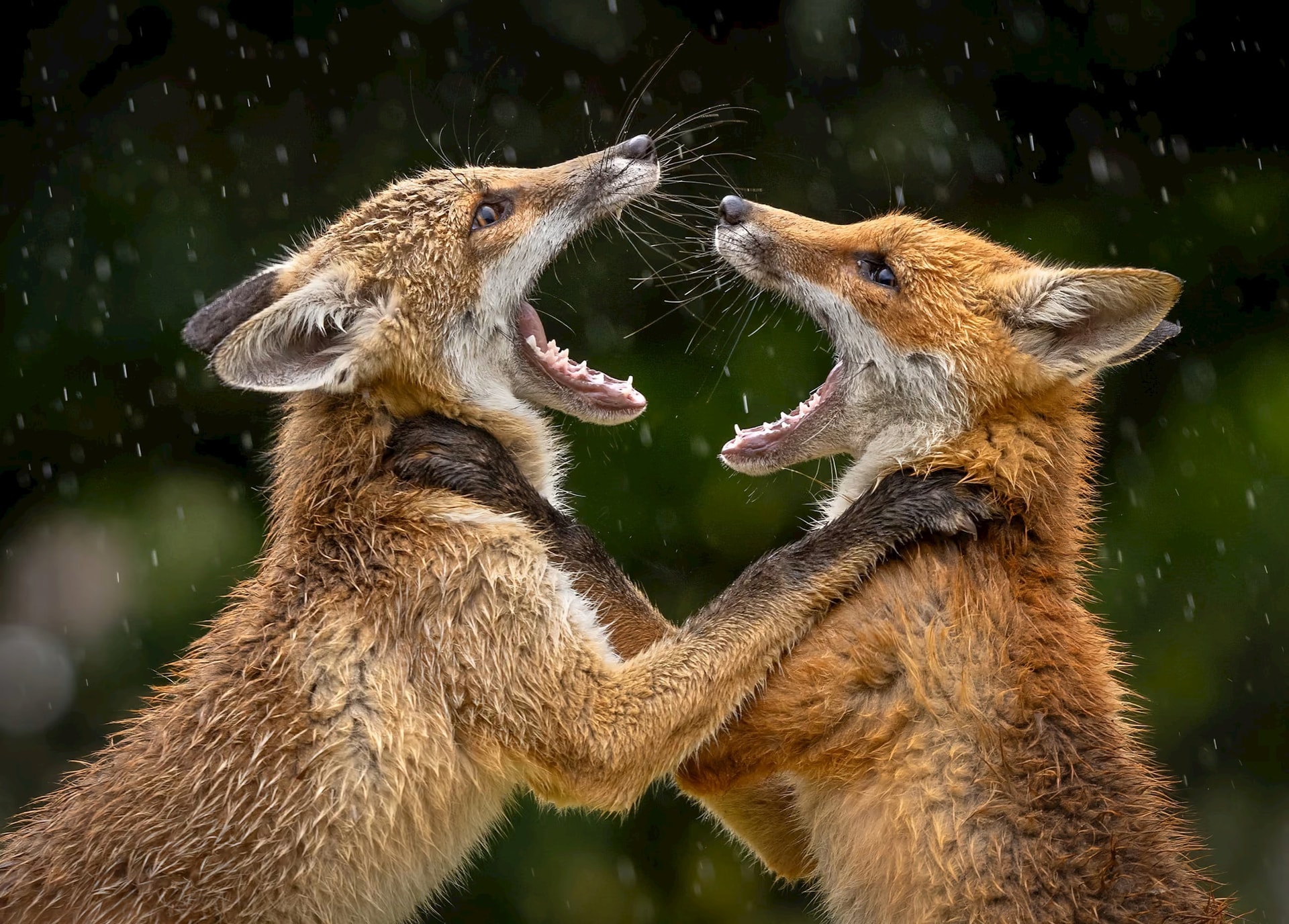 Tác phẩm nhiếp ảnh "Những con cáo đánh nhau trong mưa" của Sophia Spurgin đồng thời đạt giải thưởng ở hạng mục Du lịch.