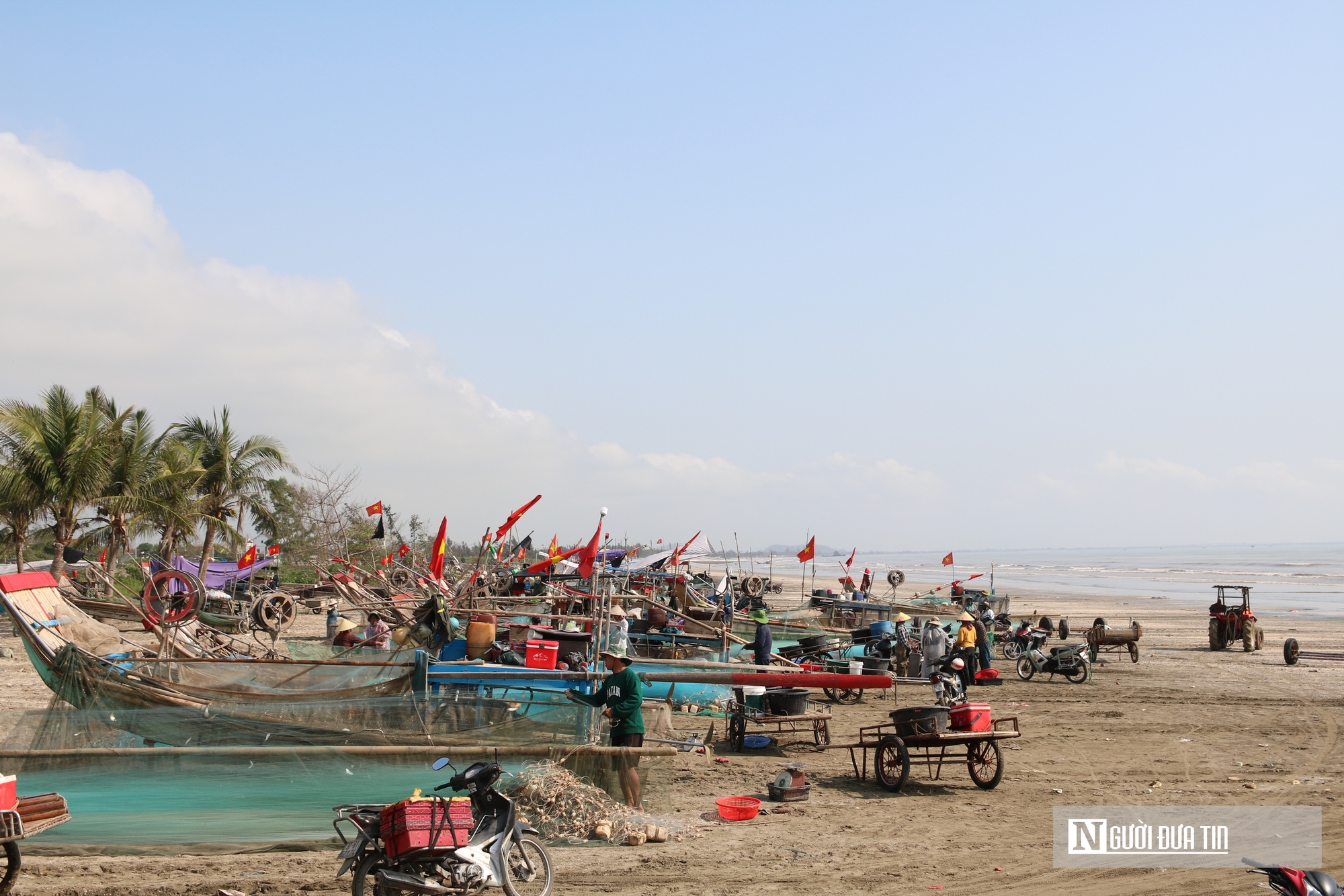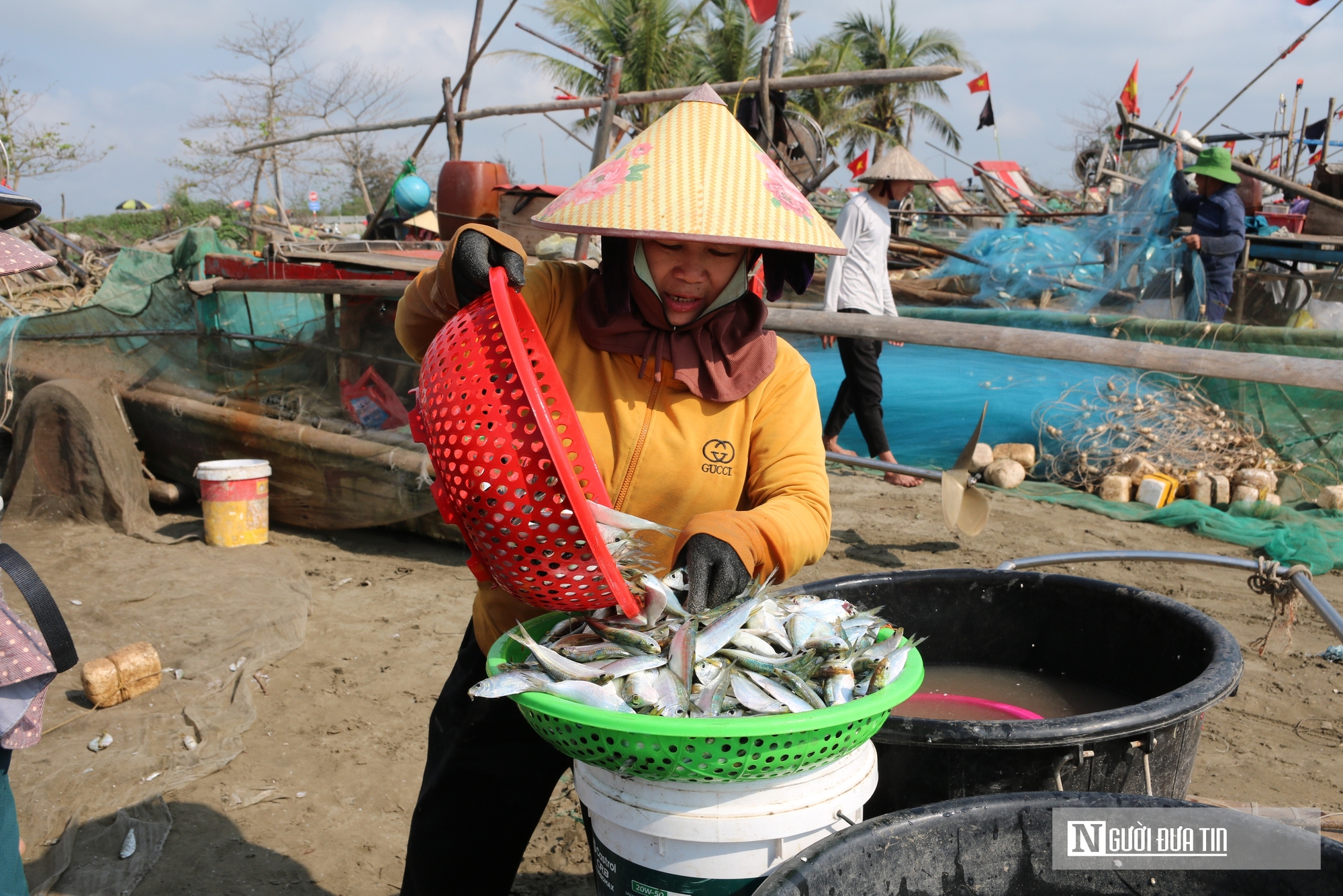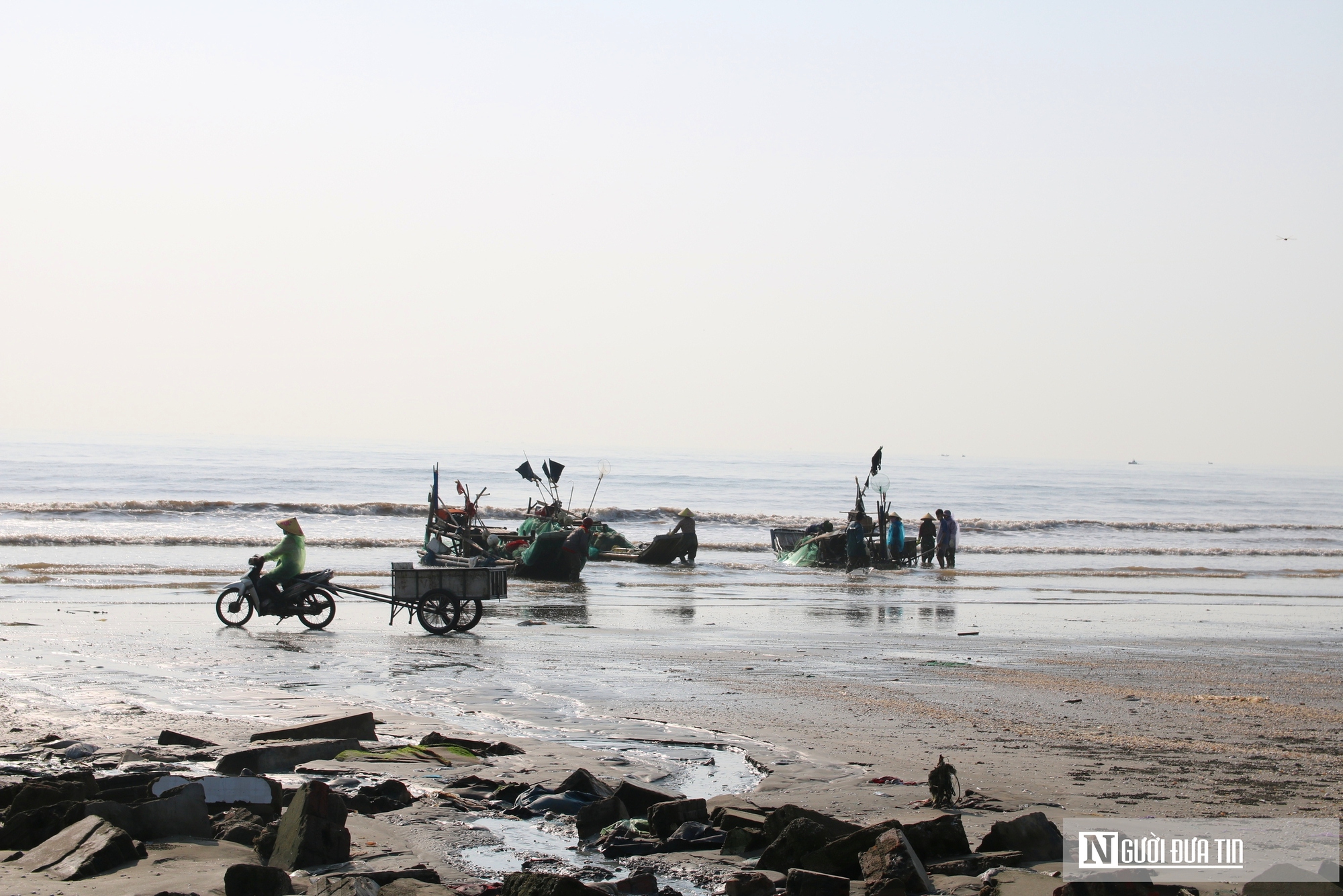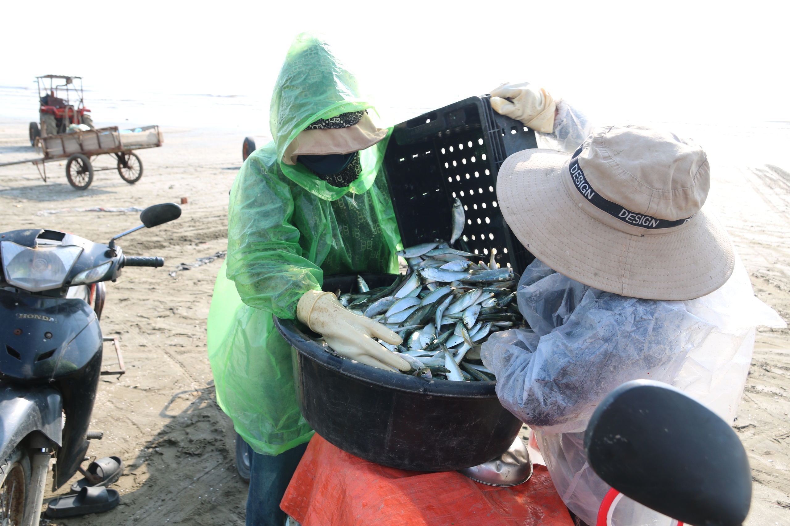 Theo ghi nhận của Người Đưa Tin, từ sáng sớm, ở vùng ven biển xã Hải Châu, tỉnh Nghệ An, hàng trăm thuyền nhỏ, bè mảng cập bến, mang theo những mẻ cá trích tươi rói vừa được đánh bắt từ biển khơi. Ngư dân bắt đầu chuyến đi biển từ 1–2h sáng. Thuyền chạy ra cách bờ chừng 10–15 hải lý, thả lưới.