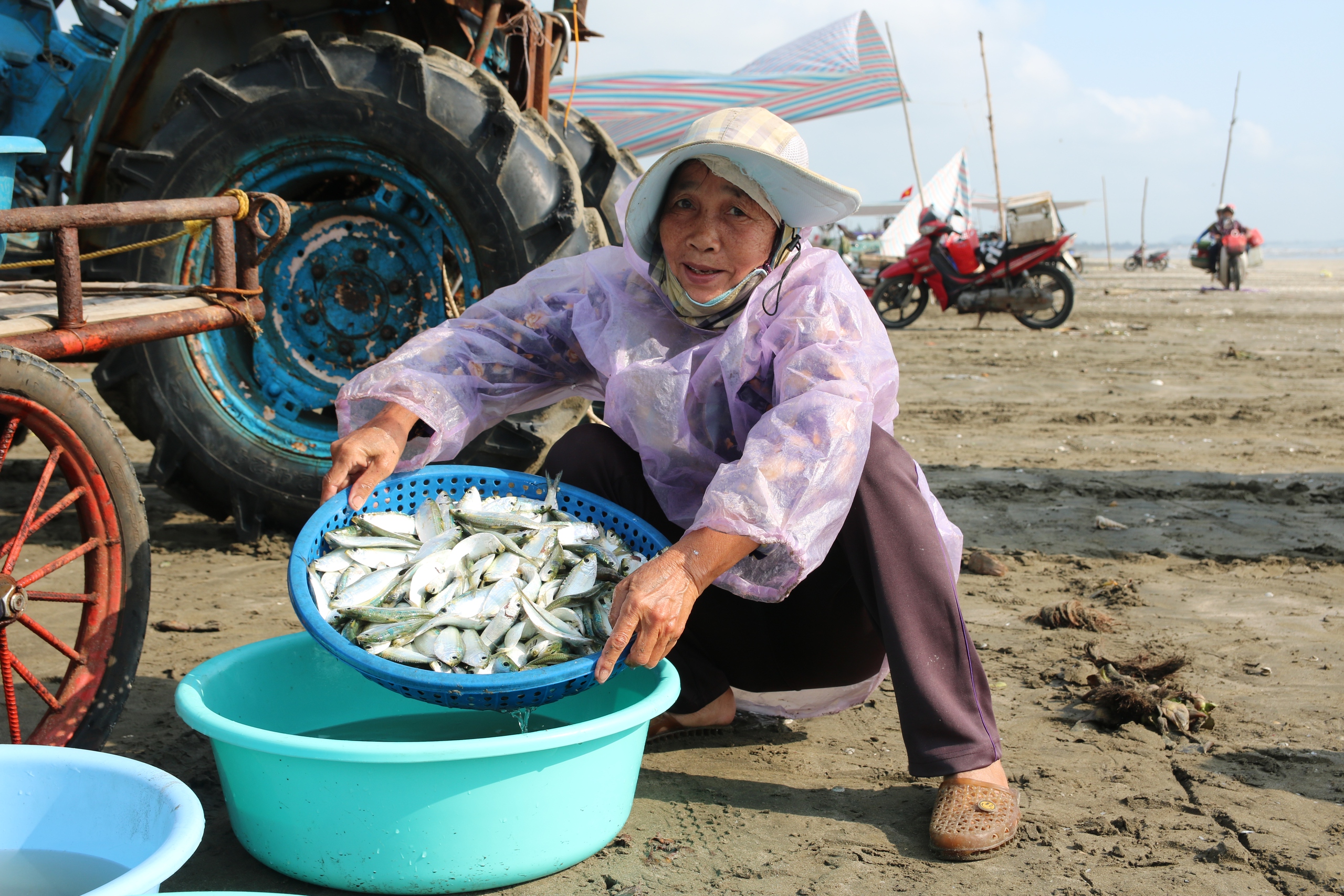 Bà Nguyễn Thị Hoa, SN 1960, trú tại xã Hải Châu, cho biết: “Tôi làm nghề buôn cá đã mấy chục năm nay. Cứ mỗi sáng tôi lại ra bến để cùng ngư dân gỡ và rửa cá sạch, sau đó đưa đi bán. Mỗi ngày như vậy cũng kiếm thu nhập được vài trăm nghìn đồng. Vì cá tươi nên khách hàng rất ưa chuộng”.
