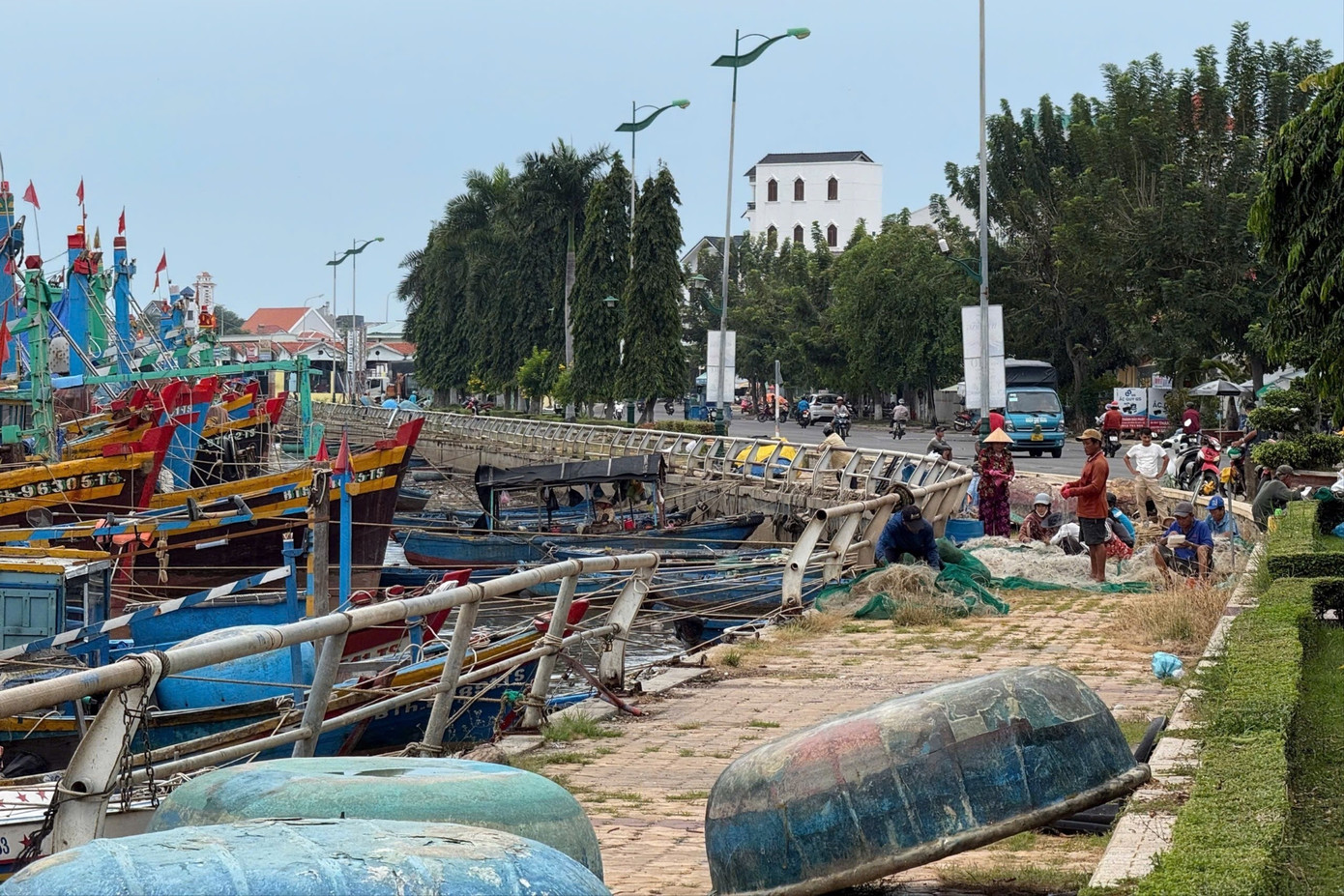 Tại cảng cá Phú Hải, không khí khẩn trương không kém. Hàng chục con tàu nối đuôi nhau vào bờ, người kiểm tra máy, người gia cố mái che, người kéo lại neo sắt. Mồ hôi hòa lẫn nước biển, mặn chát. "Cứ làm nhanh tay, vì chỉ vài giờ nữa là gió lớn rồi", một ngư dân nói.
