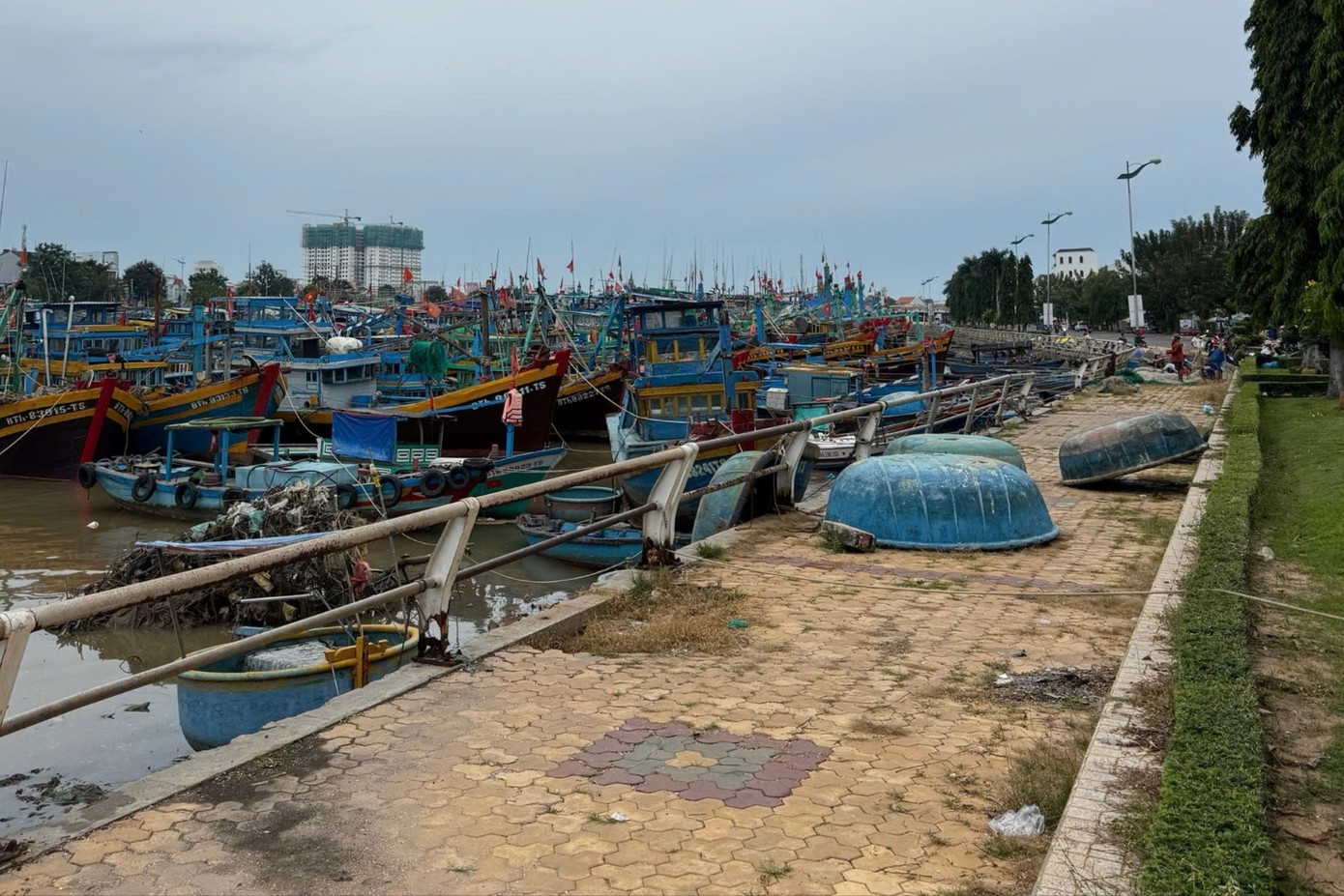 Sáng 6/11, tại khu neo đậu tàu thuyền bờ kè Trưng Trắc (phường Phan Thiết, tỉnh Lâm Đồng), không khí khẩn trương bao trùm. Ngư dân tất bật gia cố, sắp xếp tàu thuyền để tránh bão số 13.