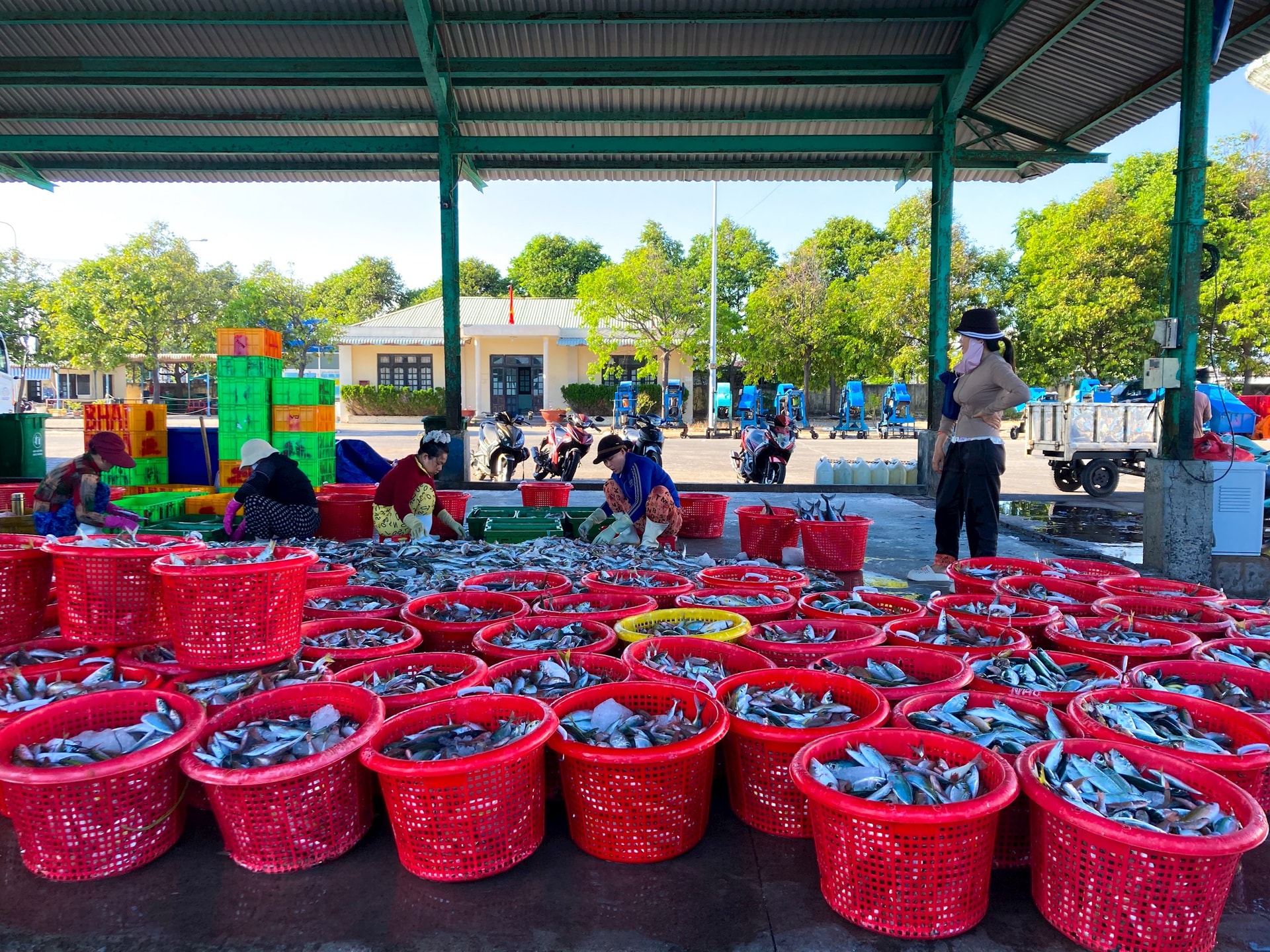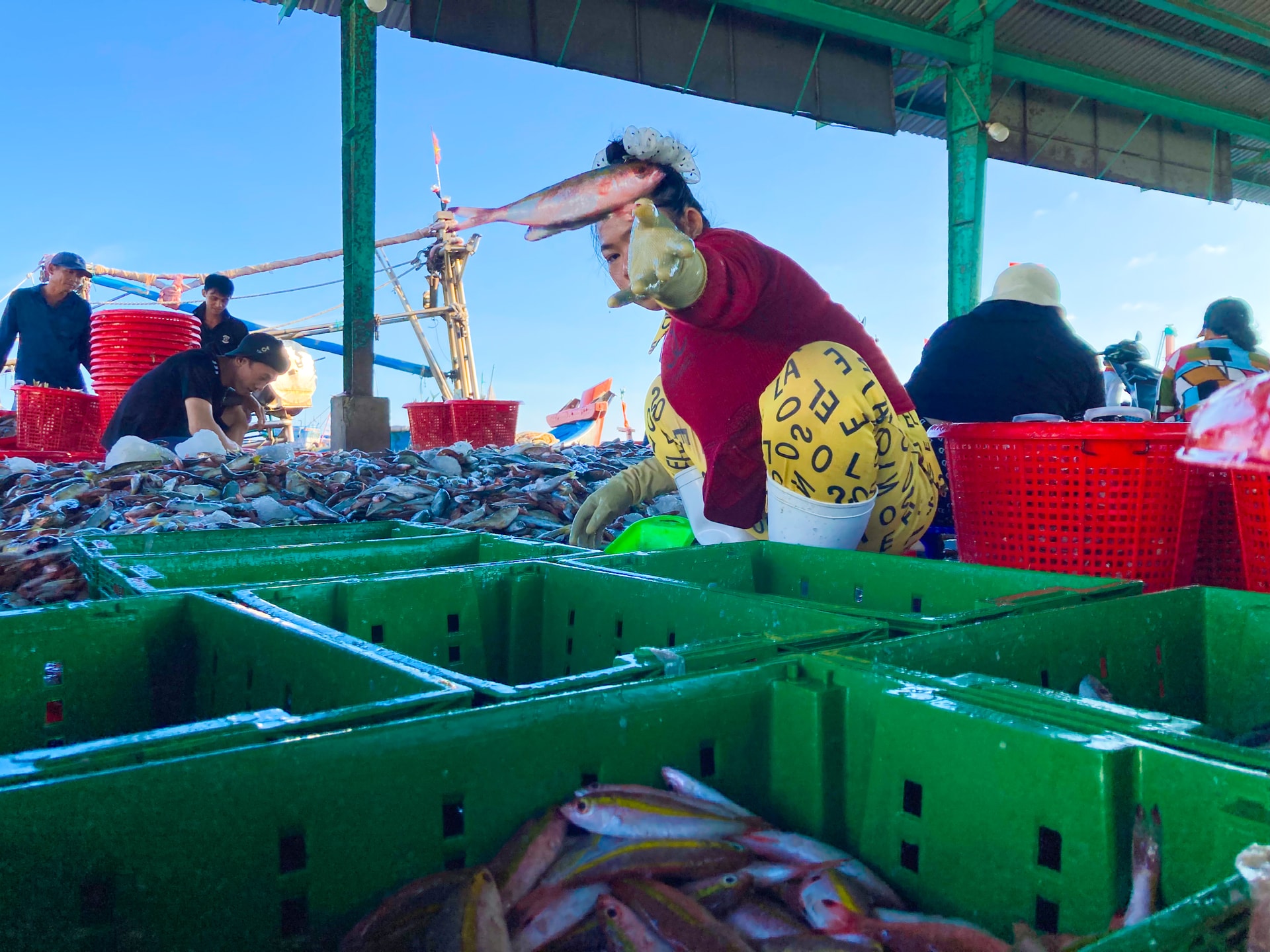 Những khoang tàu đầy cá và mực cập bến chiều nay không chỉ mang lại nguồn thu đầu năm mà còn mở ra kỳ vọng về một mùa khai thác thuận lợi cho ngư dân ven biển tỉnh Lâm Đồng. Ảnh: Bảo Giang