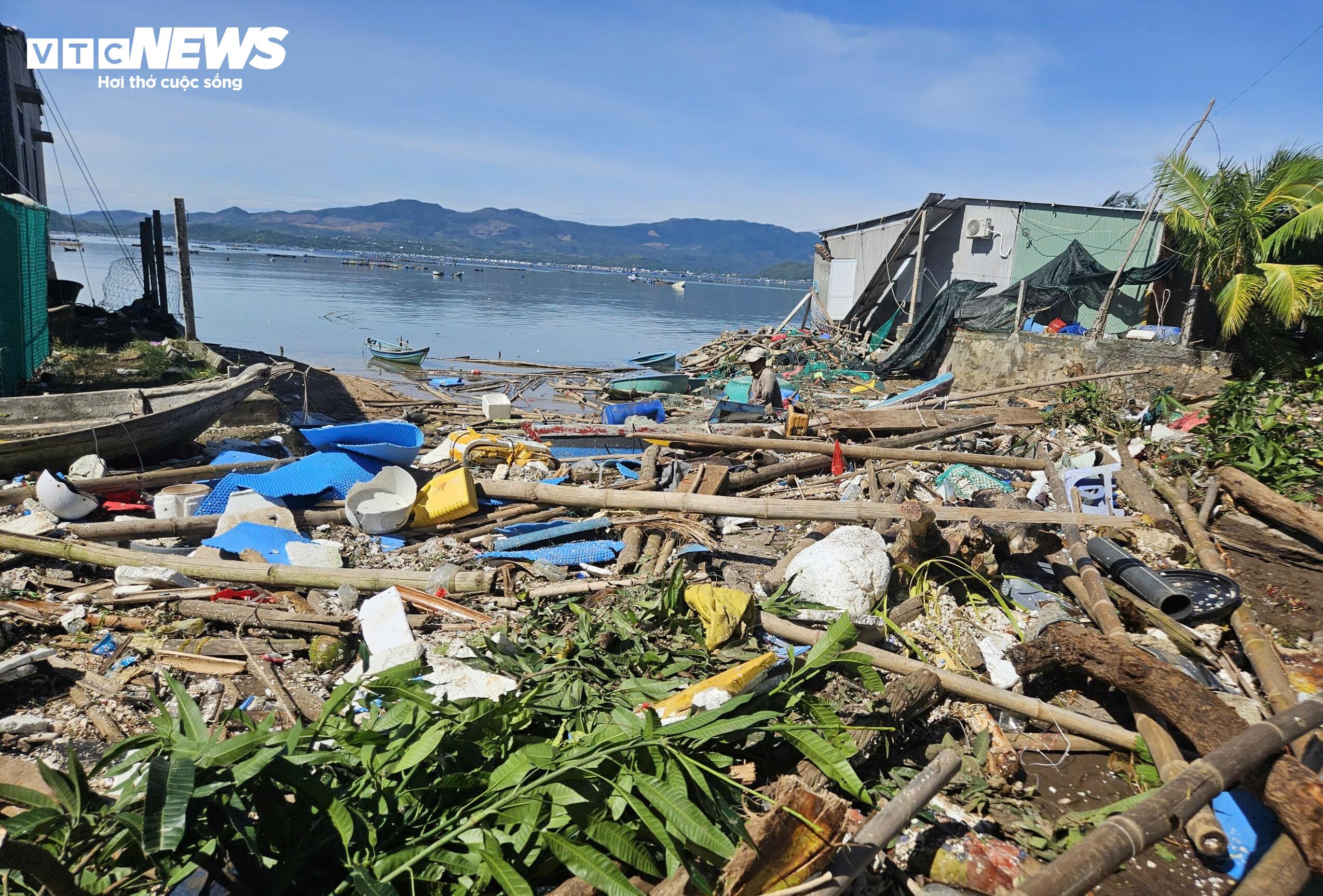 Không chỉ tàu bè, những khu nhà ven đầm của người dân nơi đây cũng bị sóng đánh tan tành.