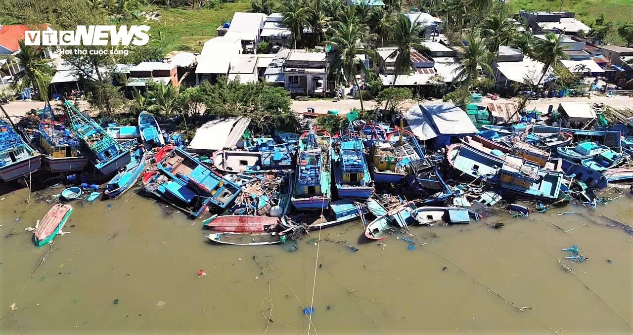 Sau khi cơn bão số 13 Kalmaegi đổ bộ đêm 6/11, nhiều làng chài phía Đông tỉnh Gia Lai tan hoang, đổ nát.