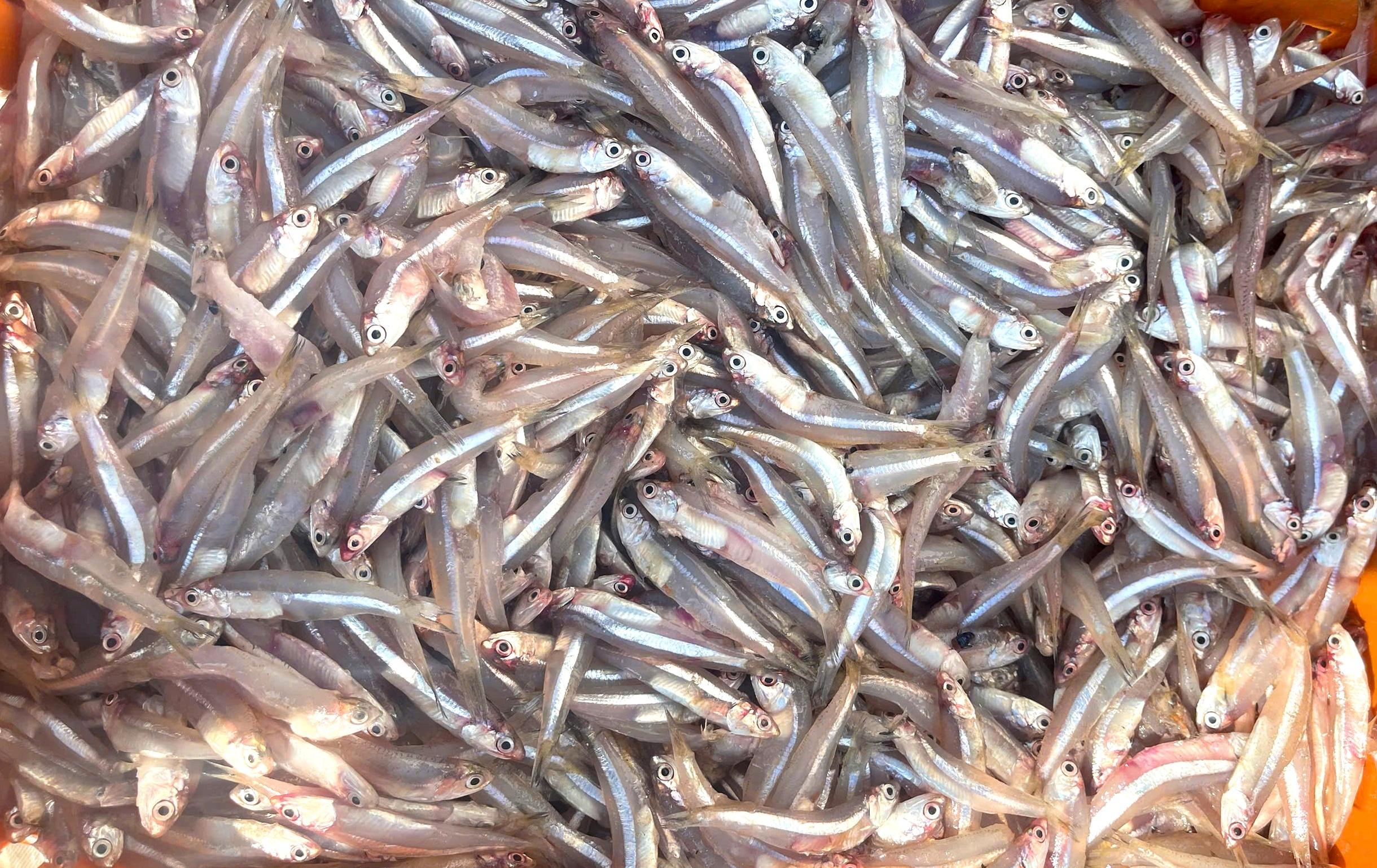 Hàng tấn cá cơm biển được ngư dân đánh bắt đưa vào bờ tiêu thụ