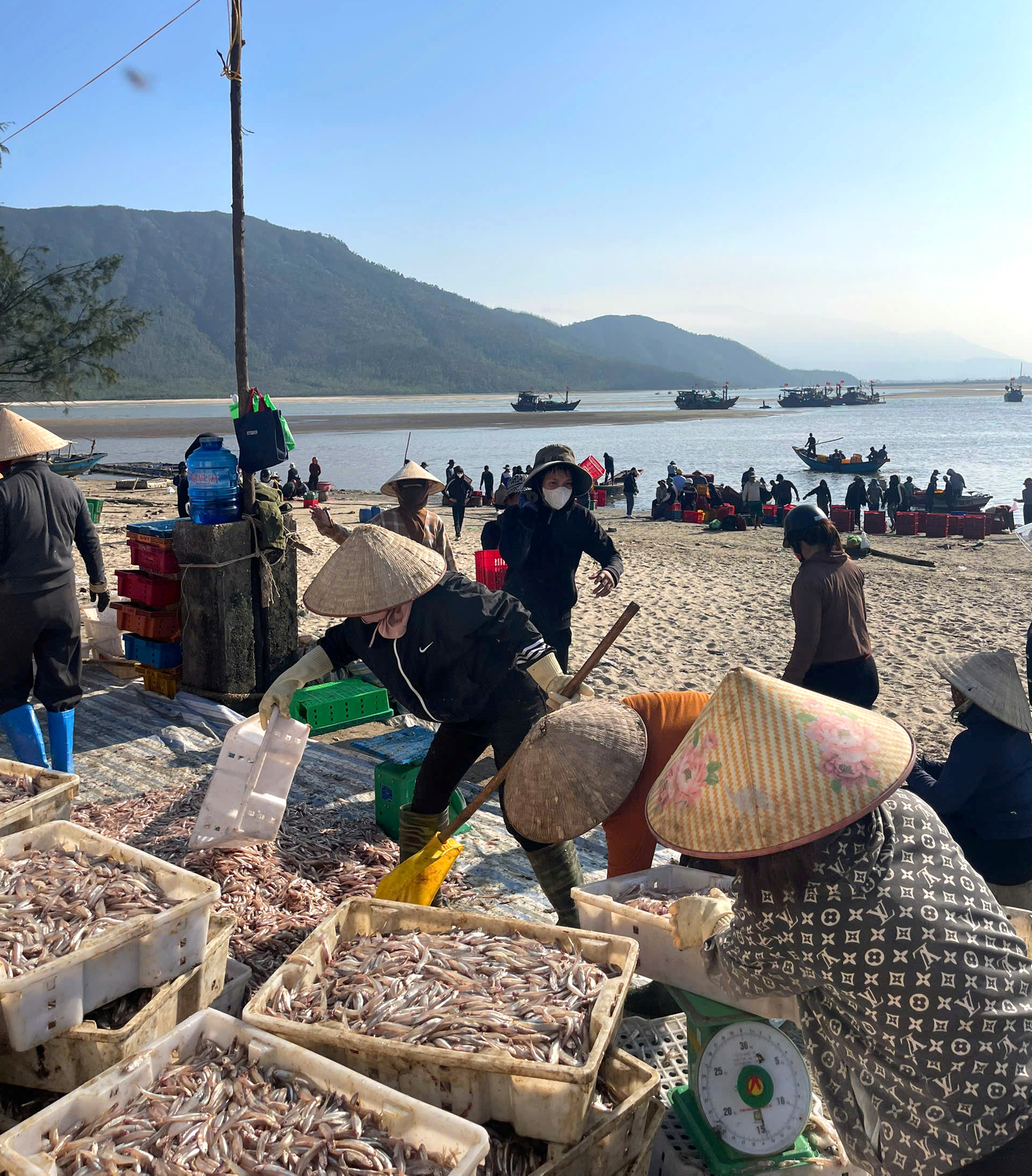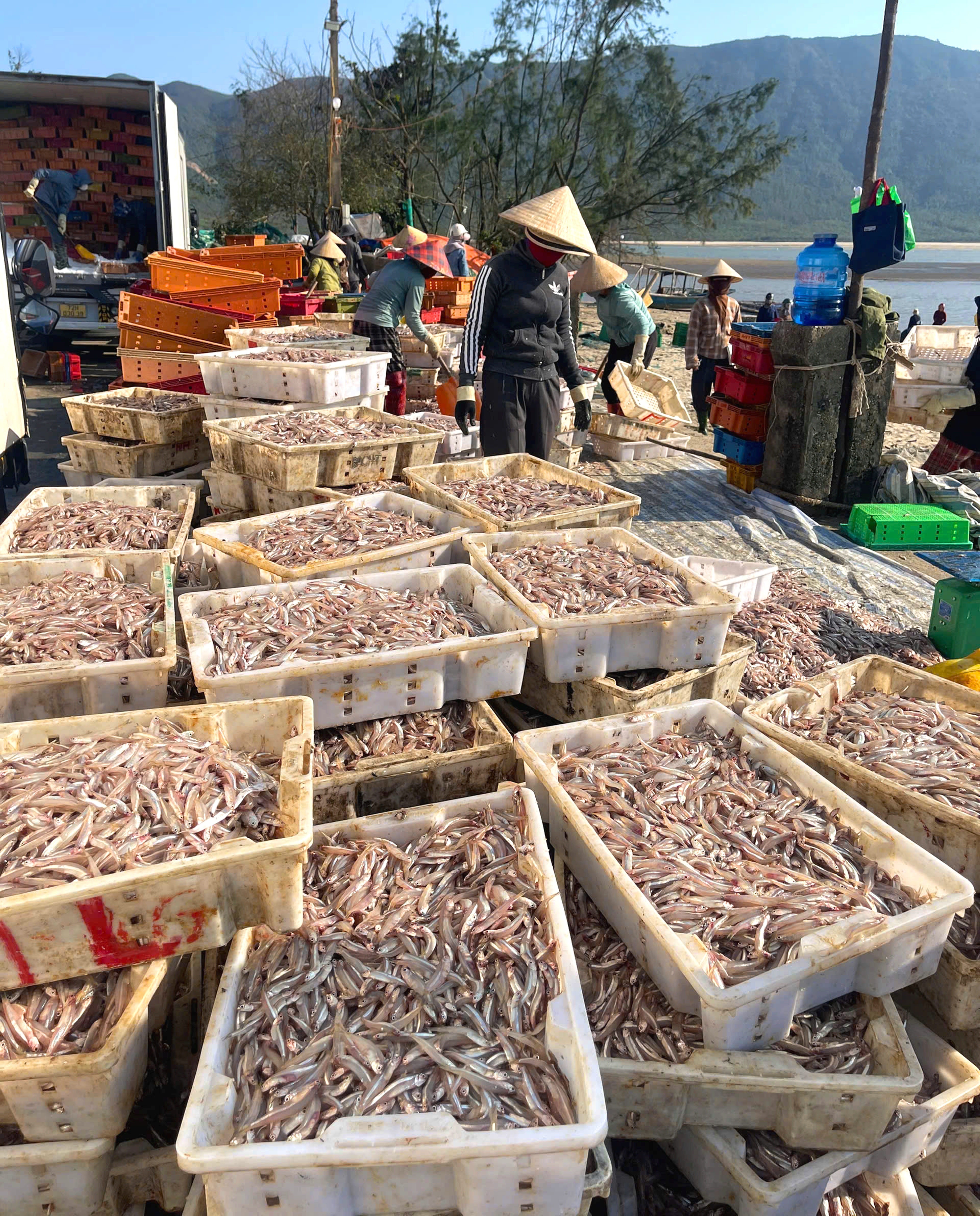 Các thương lái, cơ sở chế biến hải sản đã đến tận bờ thu mua với giá dao động khoảng từ 14.000-15.000 đồng/kg cá cơm và 12.000-13.000 đồng/kg ruốc biển. Một số ngư dân lựa chọn phơi khô ruốc để làm nguyên liệu dự trữ hoặc bán lẻ, tăng thêm giá trị.