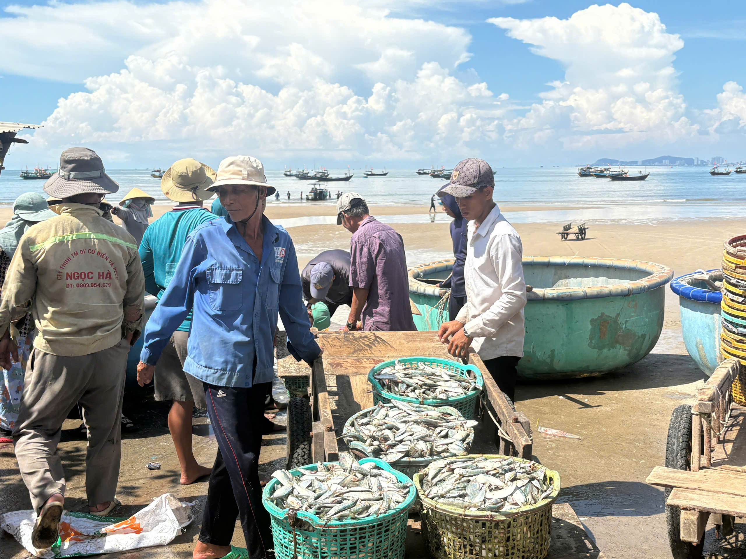 Tại khu vực thuyền thúng ấp Hải Hà 1, xã Long Hải có 50 phương tiện hành nghề lưới khai thác gần bờ, ngư dân đang phấn khởi với những mẻ cá tươi đầy thuyền – báo hiệu một mùa biển thuận lợi.