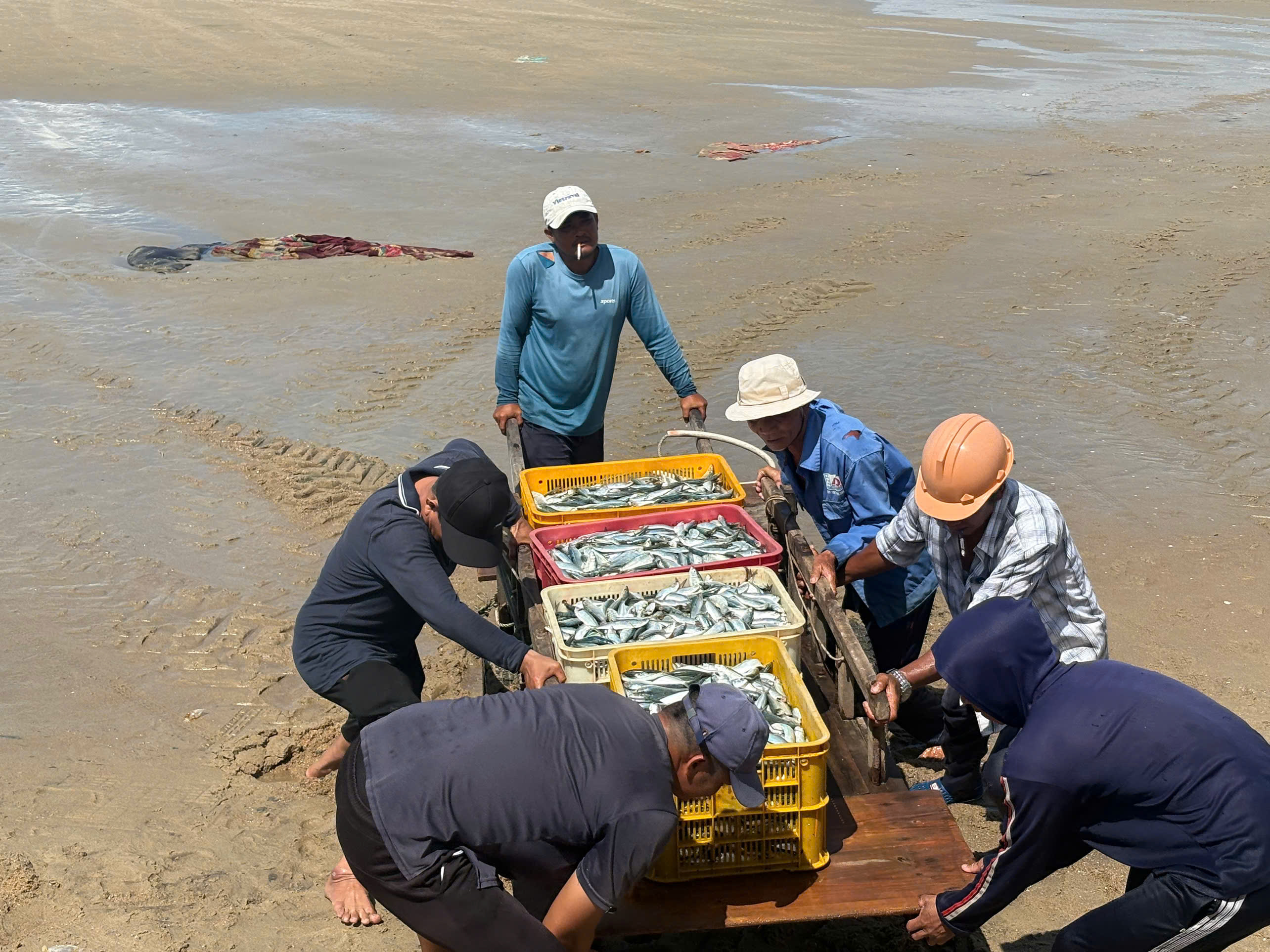 Những kết cá trích đầy ắp được ngư dân đưa lên bờ bán cho thương lái