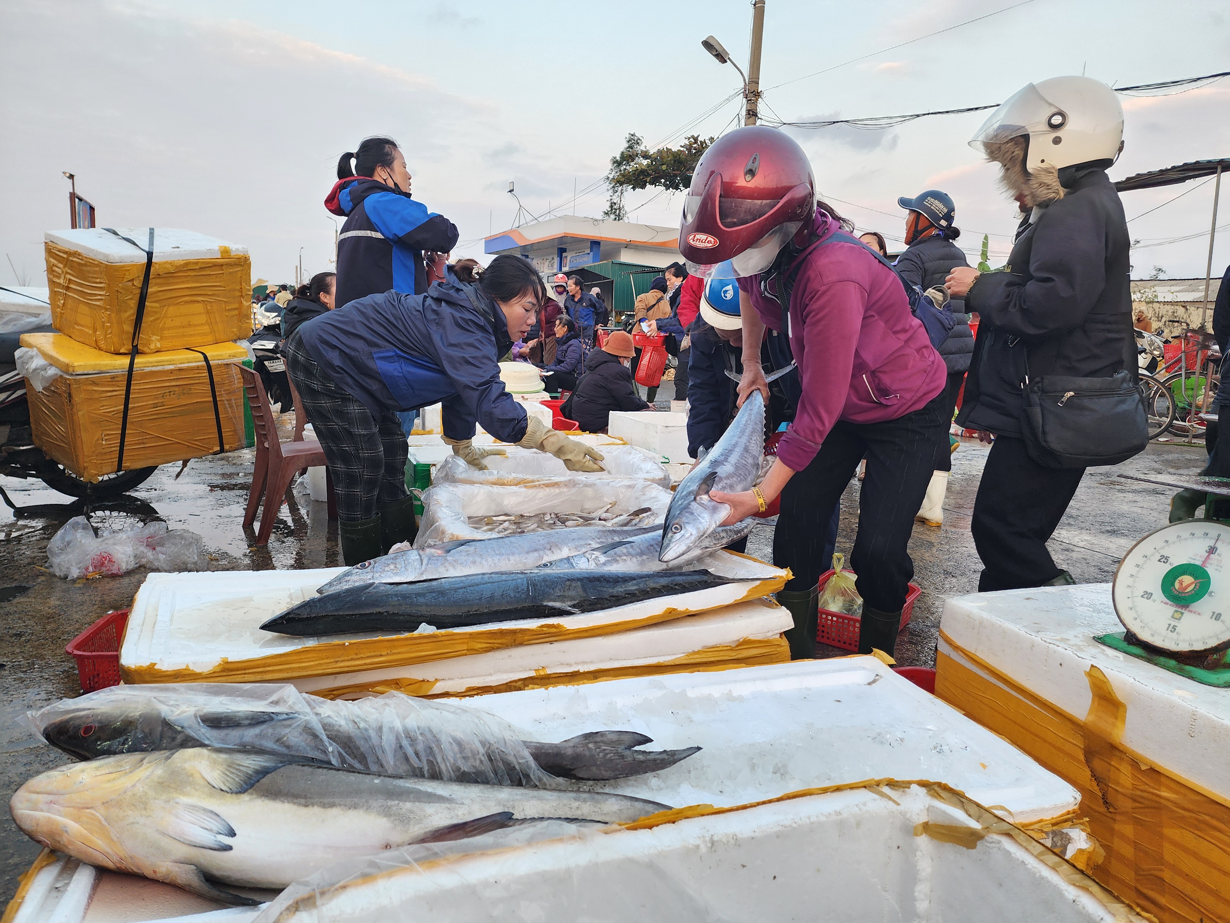 Bà Nguyễn Thị Hoa, tiểu thương thu mua hải sản tại cảng cá Cửa Sót, cho biết thời điểm này nhu cầu tiêu thụ hải sản tăng cao nên bà phải có mặt tại bến từ sớm để thu mua, cung cấp cho các chợ đầu mối, nhà hàng và cơ sở chế biến. Hải sản đầu năm tươi ngon, tàu cập cảng nhiều nên việc thu mua diễn ra thuận lợi, tiểu thương và ngư dân đều phấn khởi.