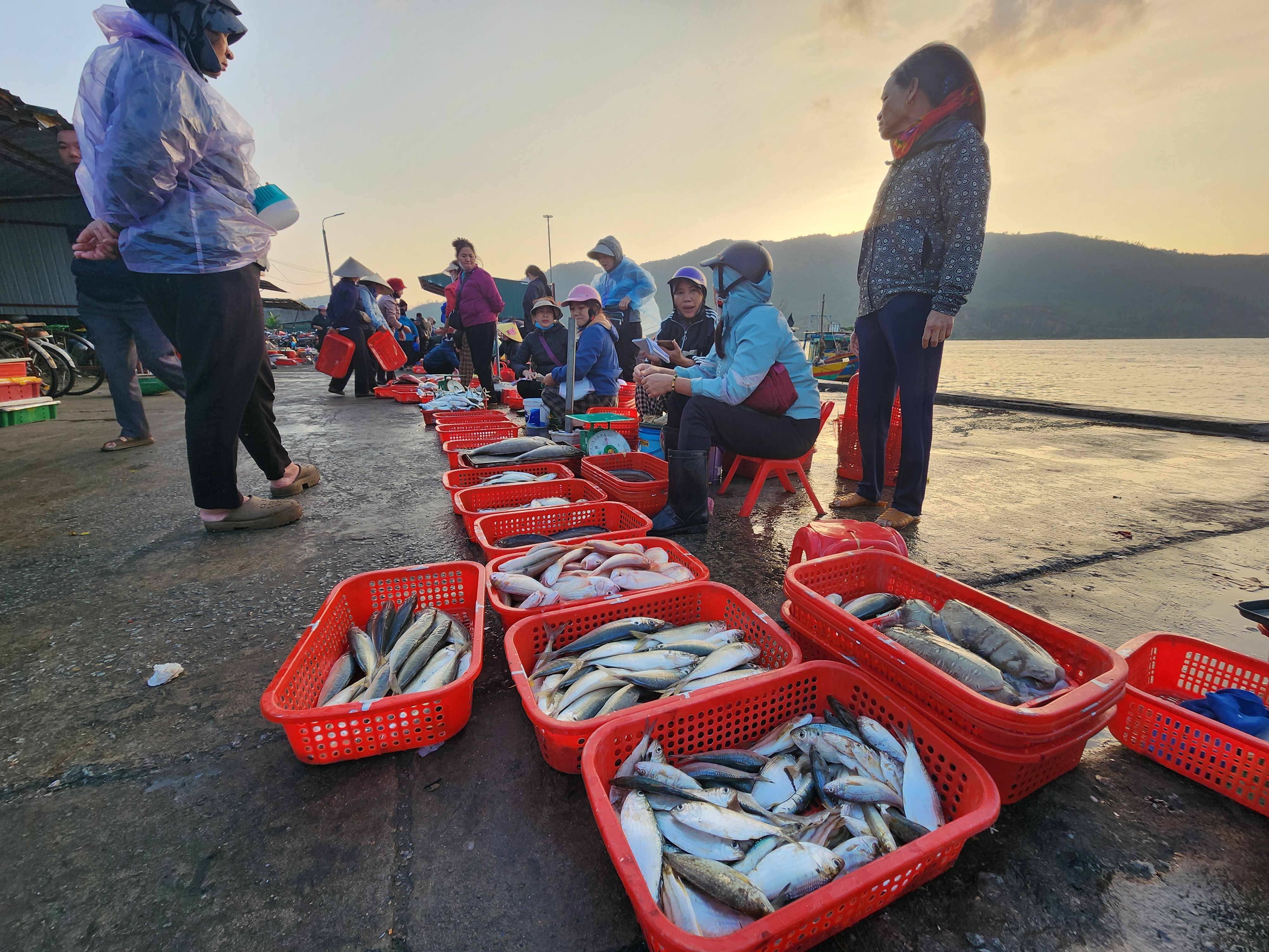 Những khoang cá đầy ắp bán đầu năm ở cảng cá Quy Nhơn
